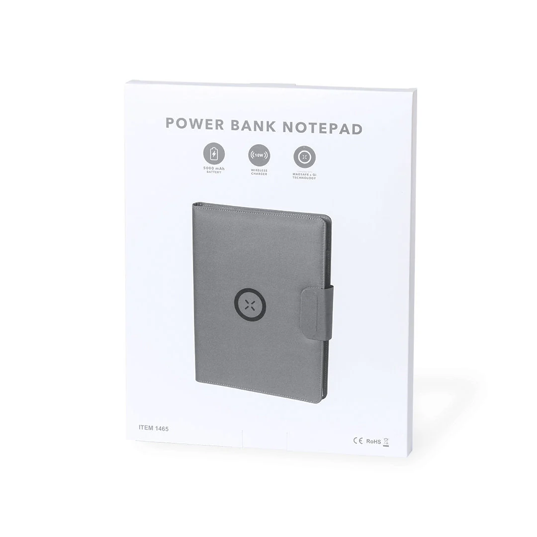 Sistema di trasferimento costante della carica, in base alla capacità del dispositivo di destinazione.Wireless 10W. Power Bank 5000 mAh. Output USB. Input Micro USB. Blocco 20 Fogli