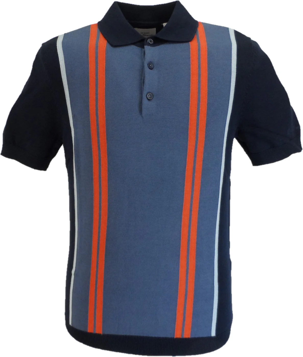 Ben Sherman Navy Blue Knitted Striped Mod Polo Shirt