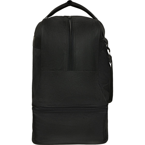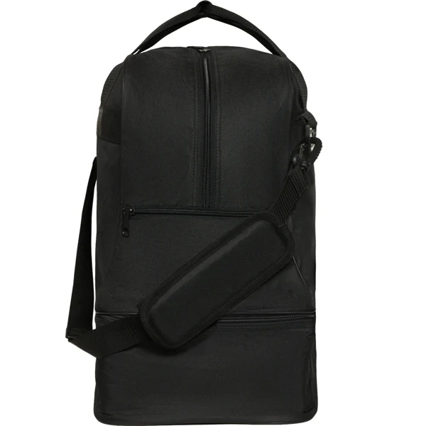 Borsa sportiva con doppio manico e lunga tracolla regolabile. Tasca principale con doppio zip. Tasca per le scarpe con scomparto rimovibile. Anti-umidità. Base con borchie. Facile da pulire. 53 L.