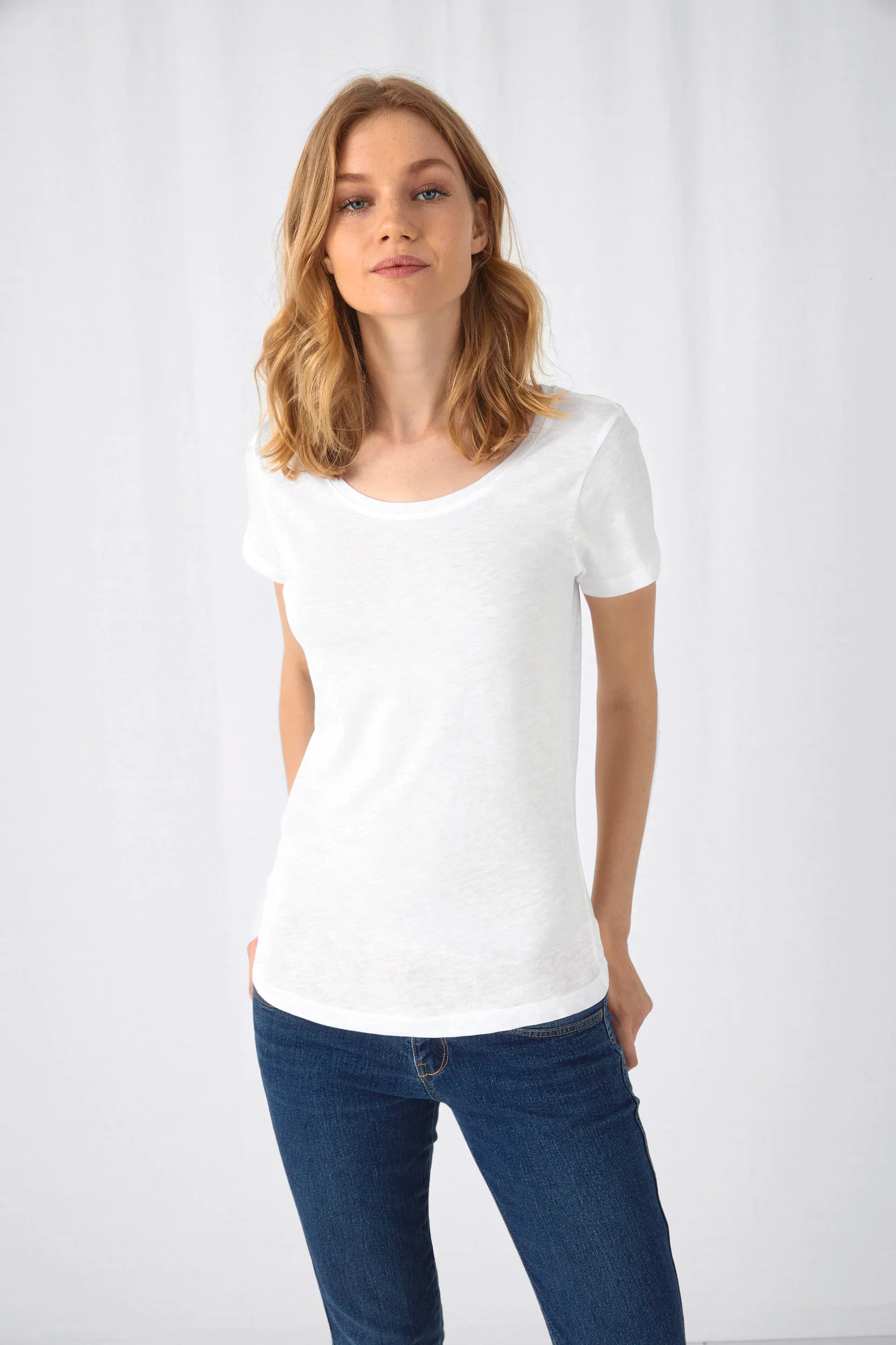 Jersey singolo 100% cotone organico SLUB pettinato ring-spun. Texture striata. Vestibilità perfetta. Girocollo. Cuciture sui fianchi. Finitura con nastrino di rinforzo sul collo. Tessuto piacevole al tatto e ultra morbido. Sistema “B&C No Label”, per un rebranding perfetto. Certificato STANDARD 100 by OEKO-TEX®N° 1501003X, Centexbel.