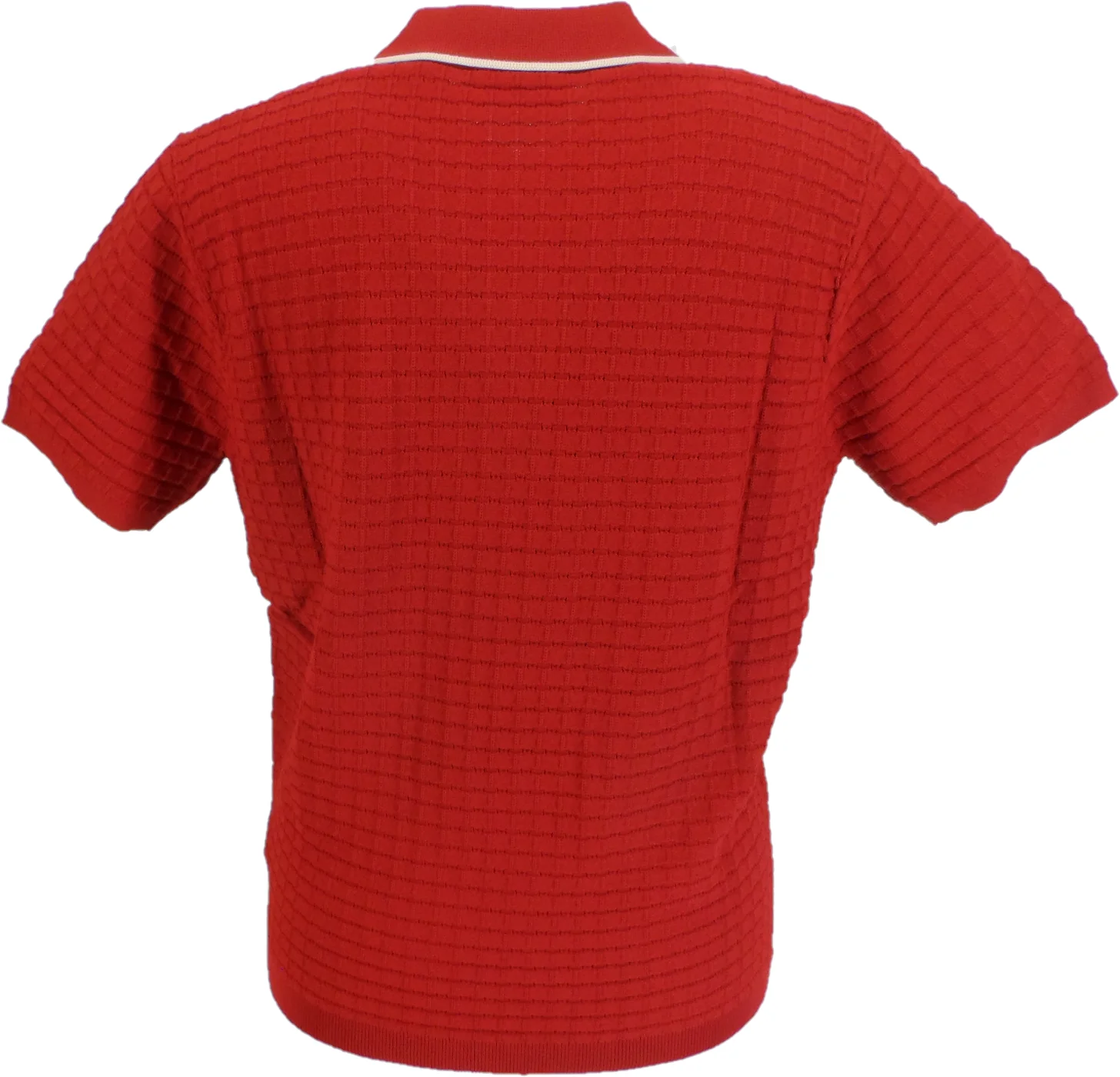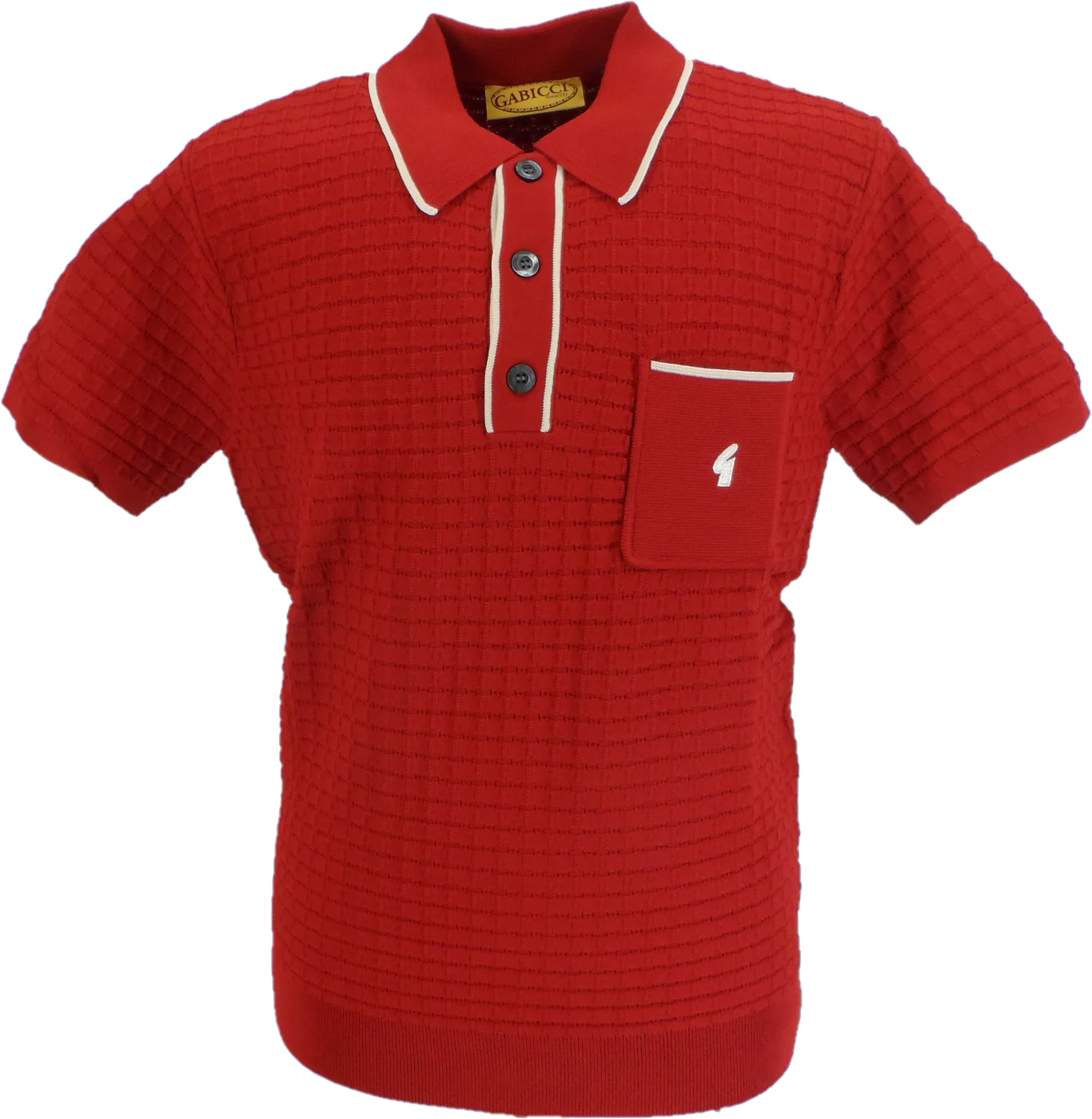The Gabicci Mens Cherry Red Archive Roy Textured Knitted Polo Shirt brings a vintage touch to your wardrobe with its stunning Linen Cherry Red colour and archive-inspired design. Made from soft viscose knit, this shirt features a three button placket and concealed button loop fastening for a unique and stylish look. Add a pop of color to your outfit with this bold and Retro polo shirt!