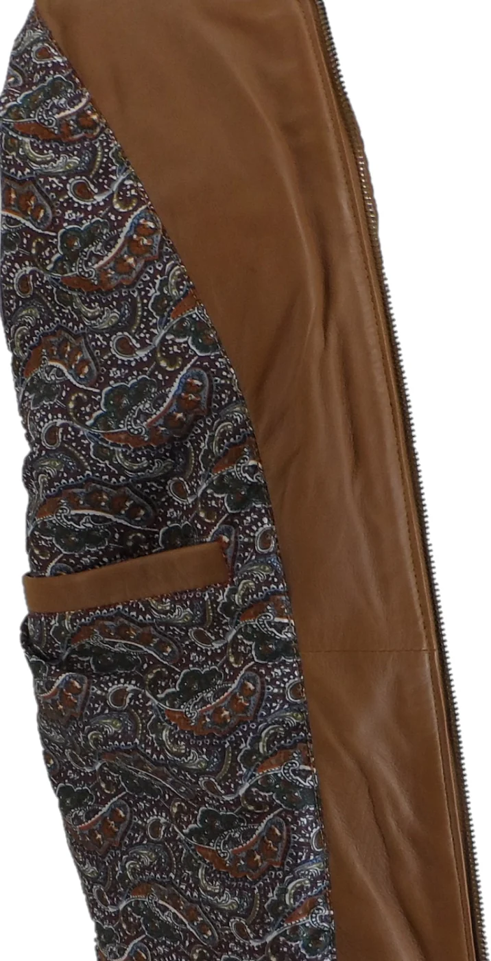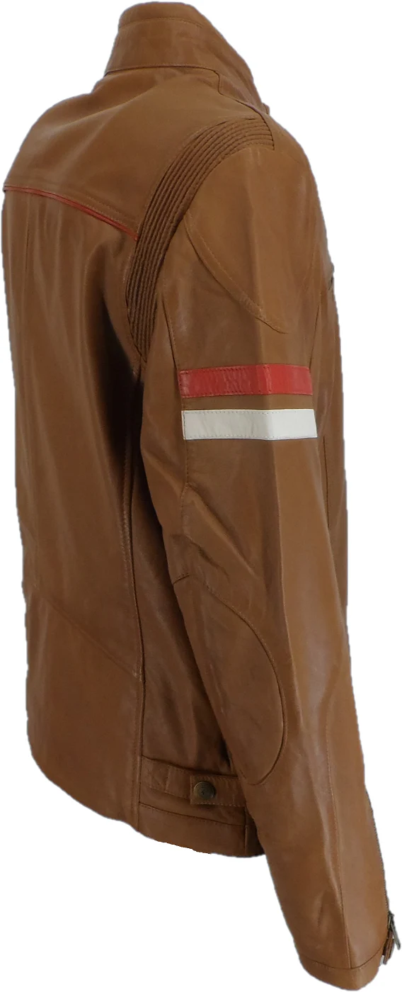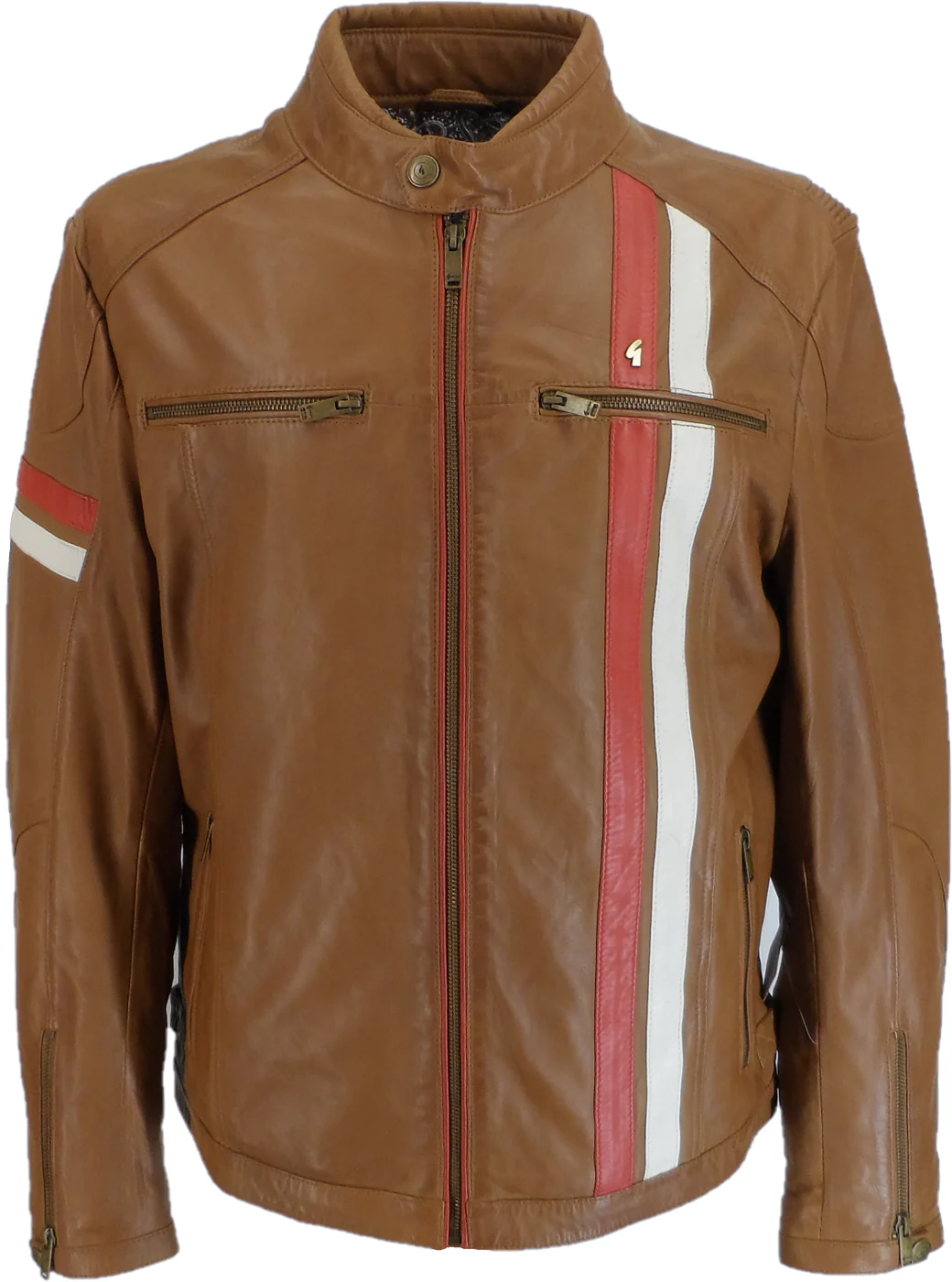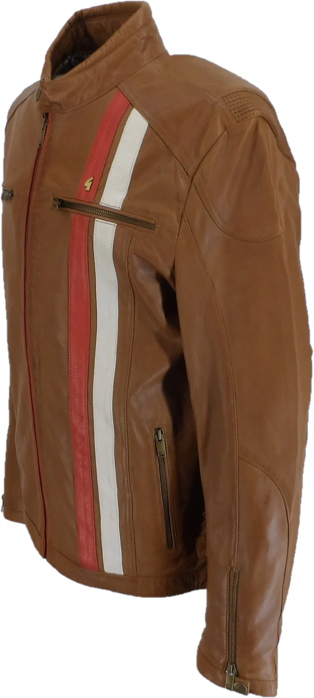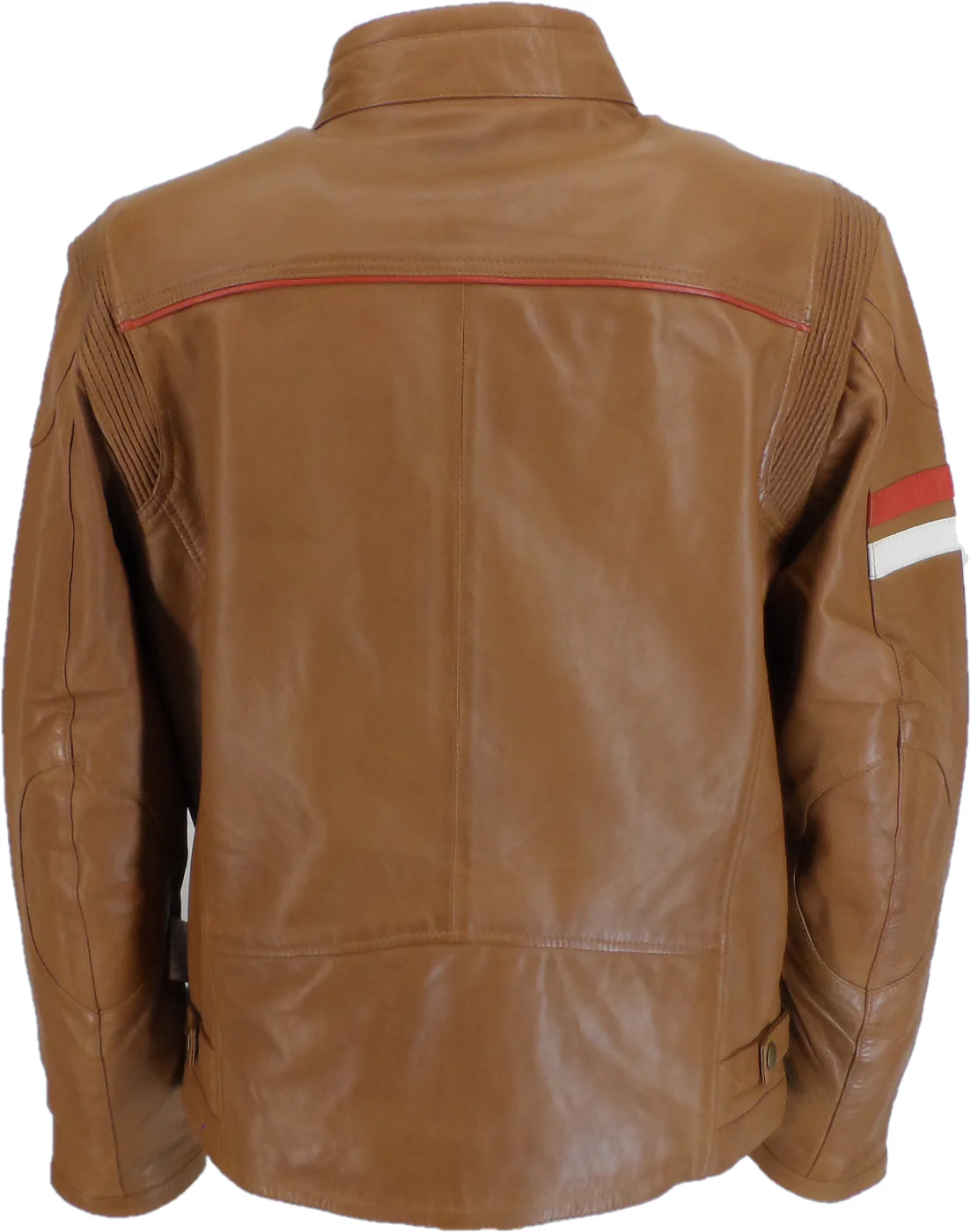 The unforgettable look in the classic film Le Mans, The Gabicci McQueen men’s leather jacket is a must-have for any man looking for a wearable modern biker-style jacket. Based on the Classic Racing Style made famous by McQueen Himself with Two Side, Two Chest and One Internal Pocket Finished inside with A paisley Print,Color-coordinated racing stripes and a buttoned collar finish off this iconic staple of the 60s and 70s. Heritage never really dies.