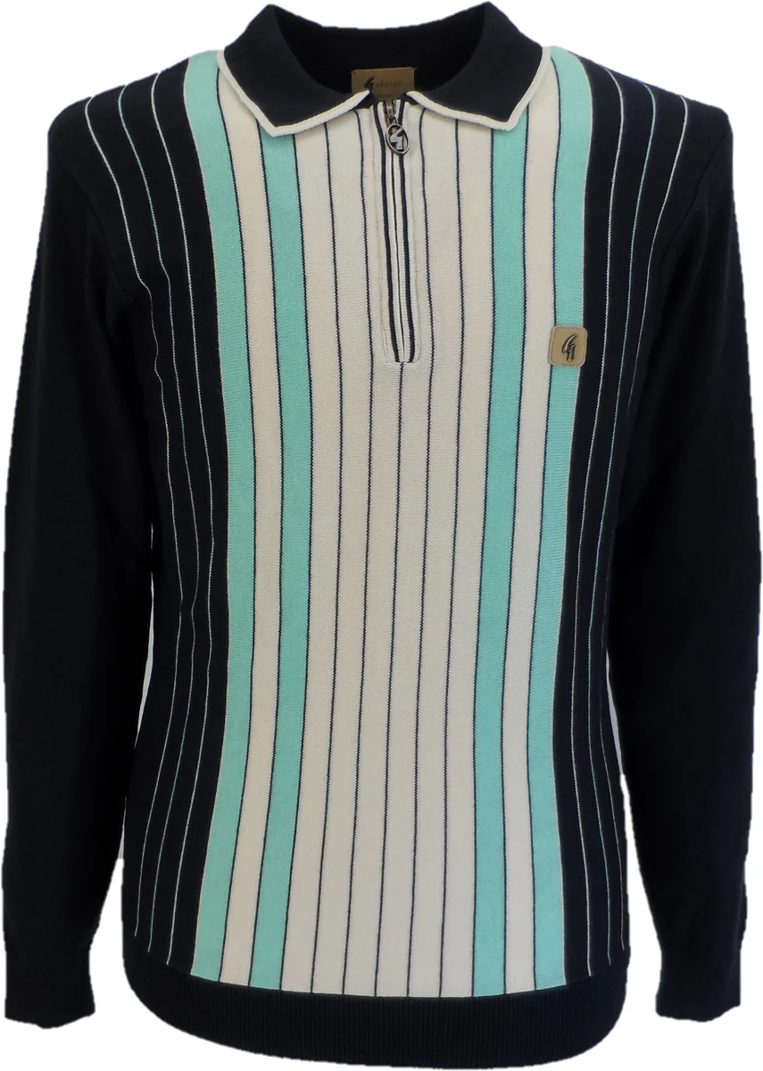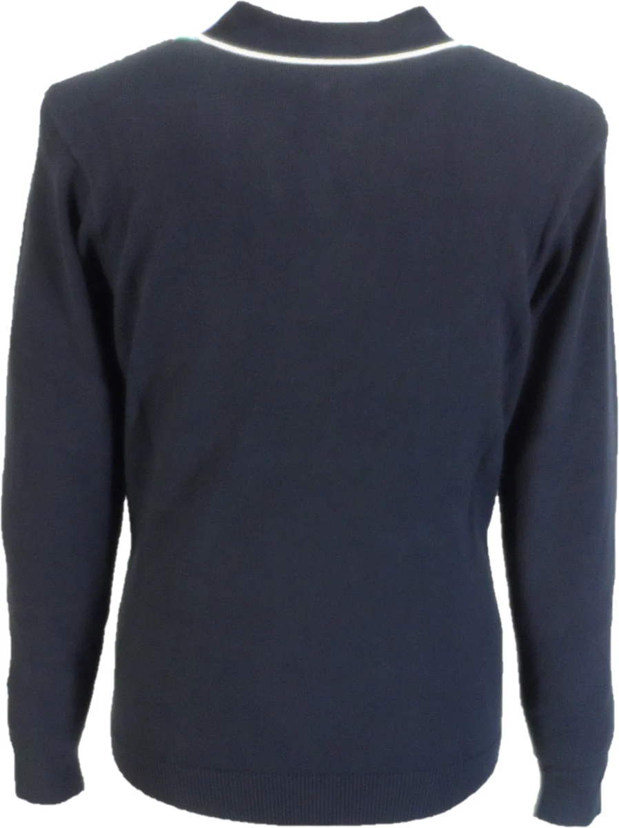 Gabicci Mens Navy Blue Scott Zipped Retro Knitted Polo