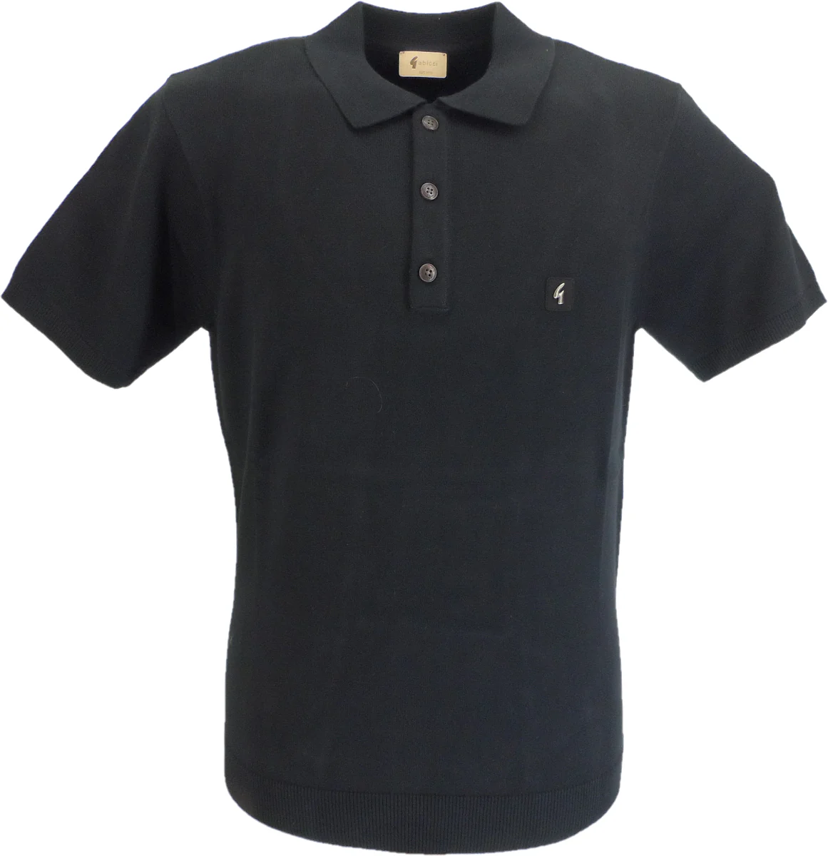 Retro classic Knit Polo from Gabicci vintage. Constructed from a high-quality cotton blend for an extra comfortable fit. The Jackson polo features ribbed sleeves and hem for a flattering silhouette. Gabicci metal ‘G’ logo on the chest
