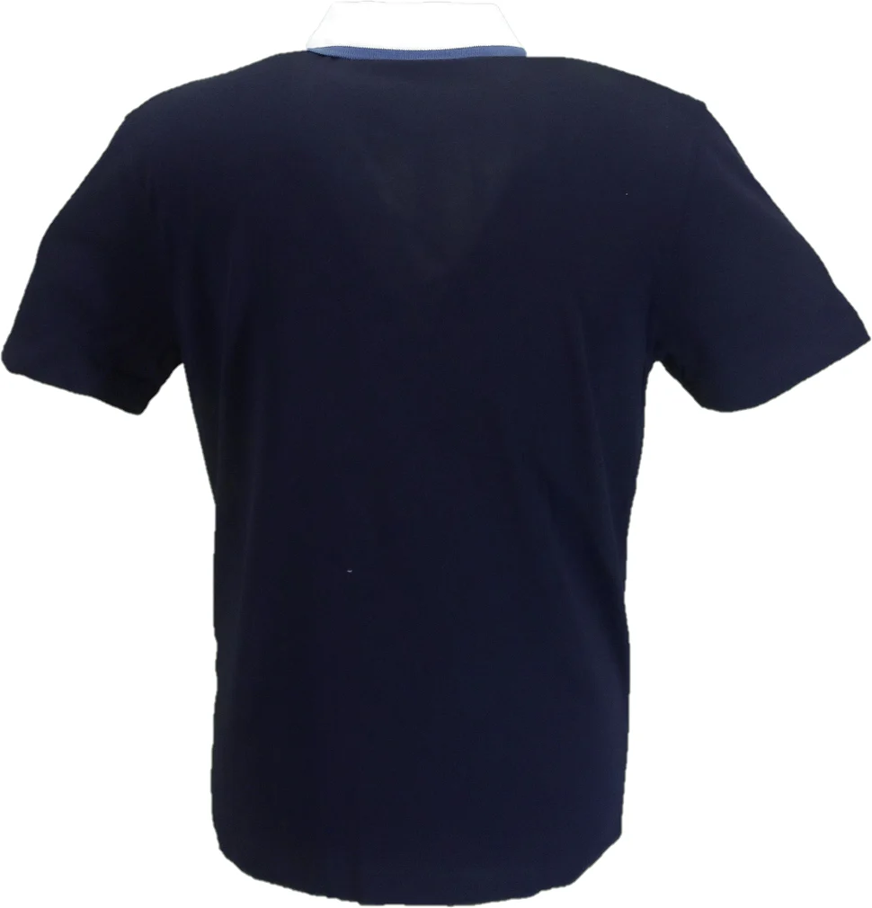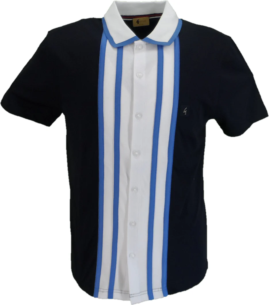Gabicci Vintage Mens Navy Blue Button Up Striped Polo Shirt