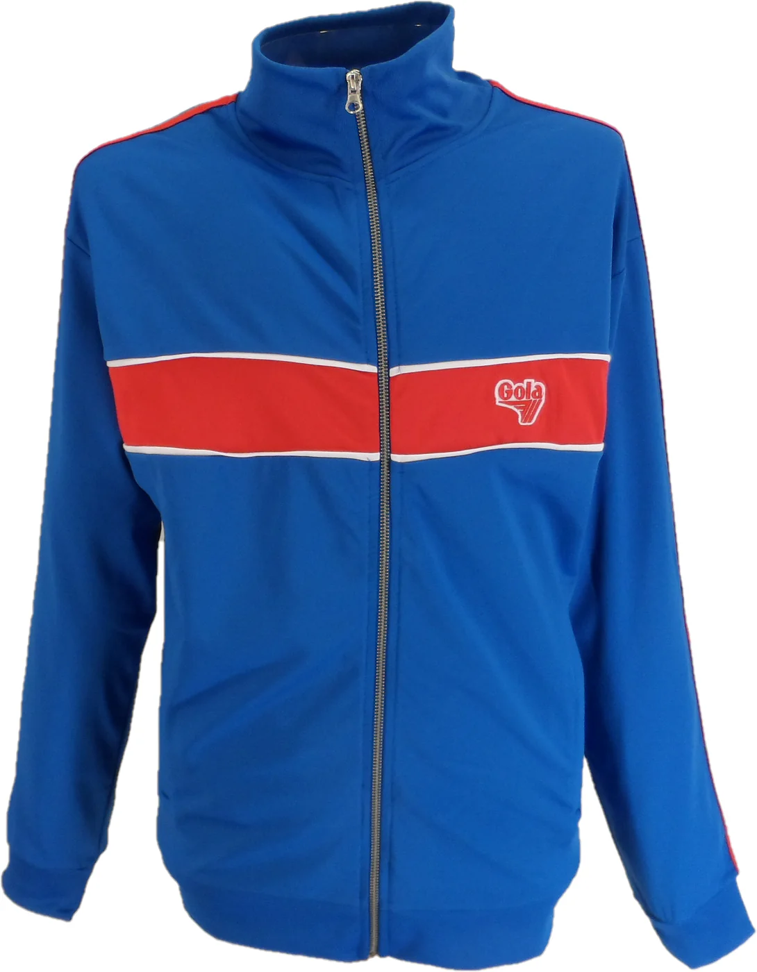 Gola Classics Retro 70s knit plain track top, with Single stripe details to shoulder and sleeve, with two pockets, with a zip and the Gola printed Logo to the chest and on the back