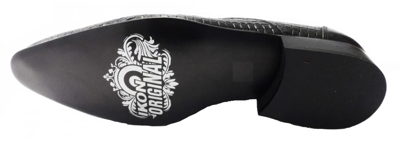 Classic styling leather uppers in black which has a weave effect. Full leather lining and insoles with the Ikon logo embossed upon it and hard-wearing leather effect resin soles.