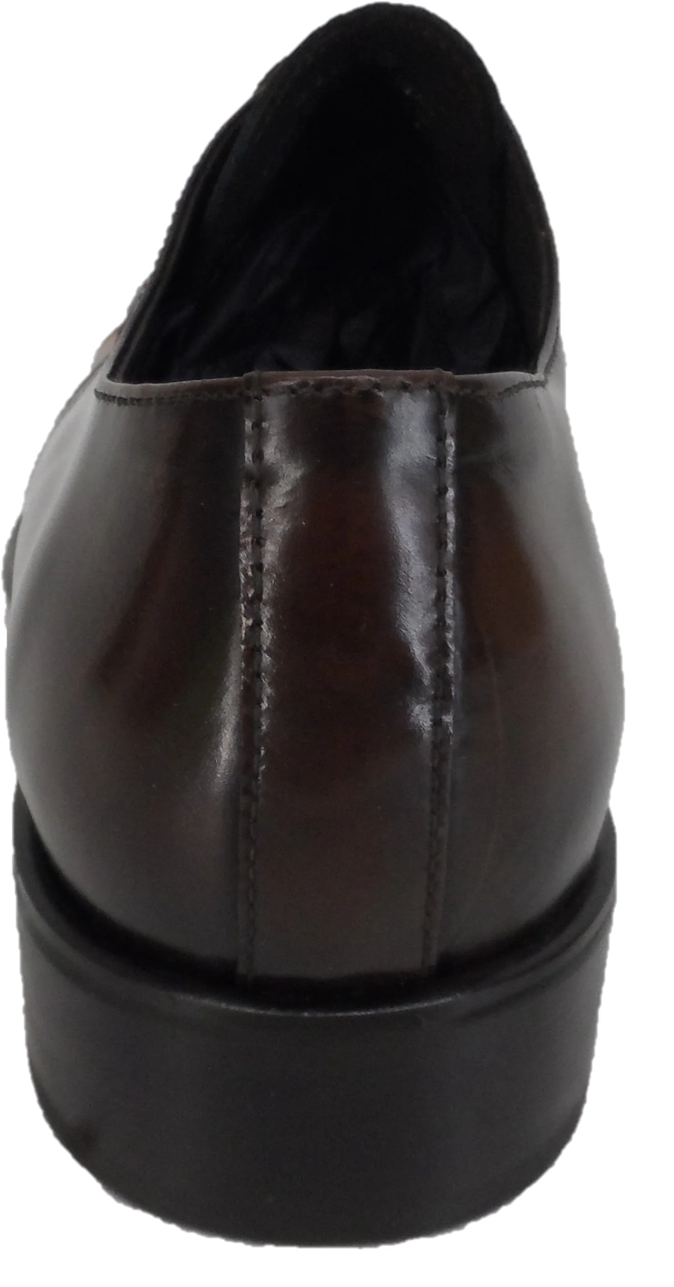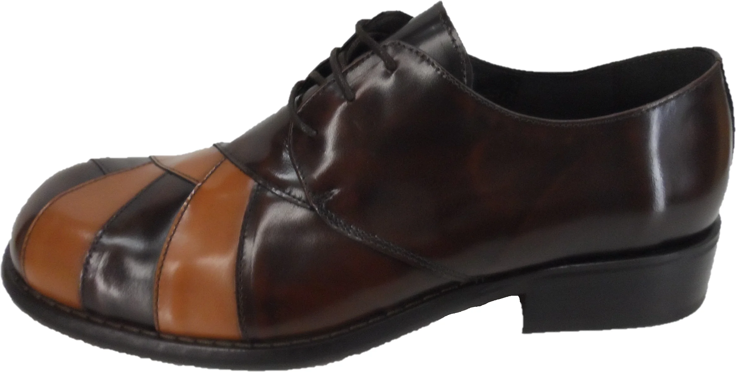 Classic retro all leather men’s shoe by Ikon Original with tan and brown crossover design on the front with a leather sole.