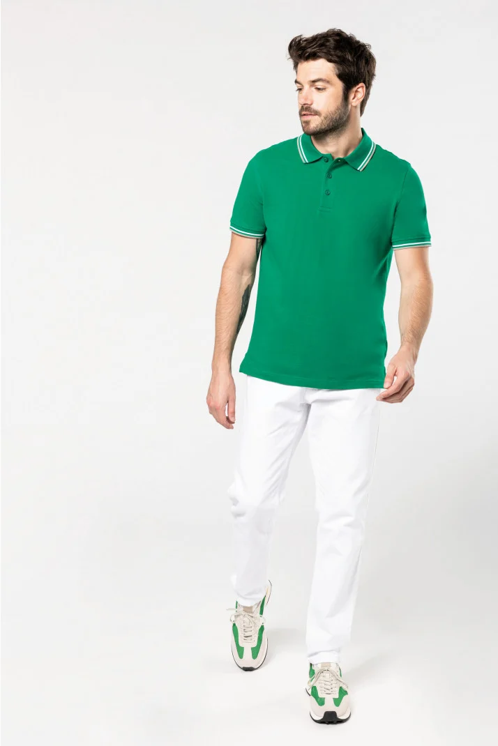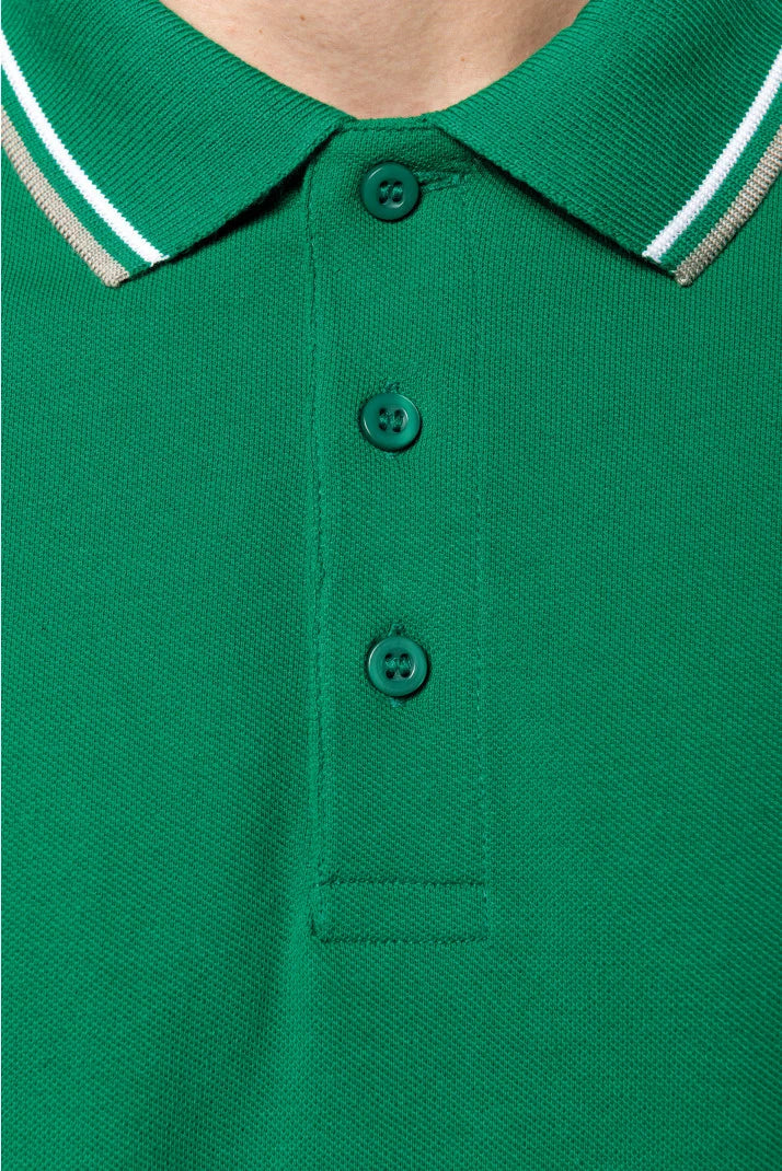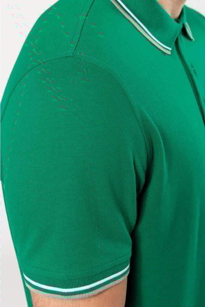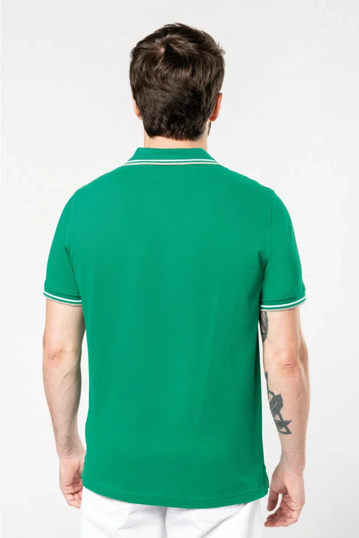 100% Cotone Piqué. 3 bottoni. Collo in contrasto, in costina e spacchetti laterali. Costine con profili in contrasto sul collo e polsini. Cuciture a doppio ago. Certificato STANDARD 100 by OEKO-TEX®N° CQ1007/7, IFTH.