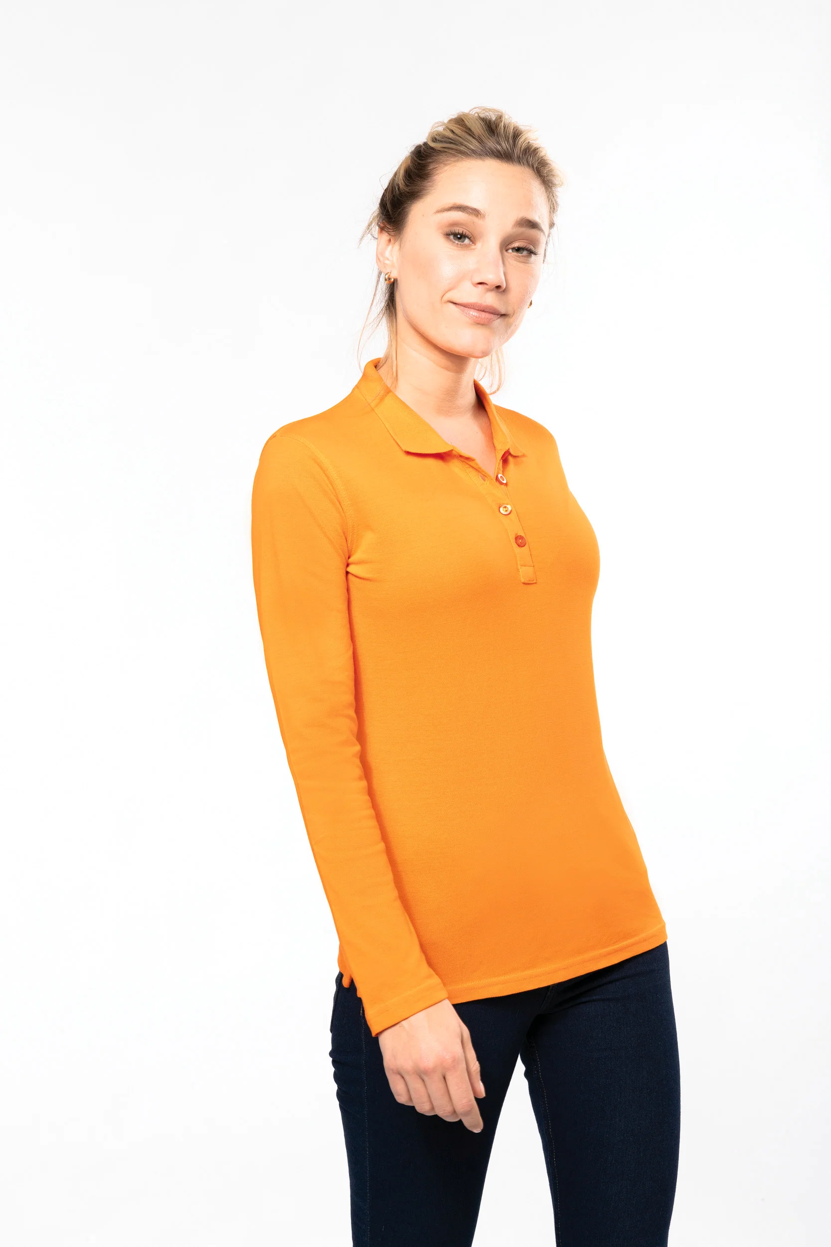 100% cotone piqué preristretto (Oxford grey: 90% cotone / 10% viscosa). Taglio sagomato. Colletto a costine 1×1 e orlo a fondo manica tono su tono. Pattina con 4 bottoni tono su tono. Nastrino di rinforzo sul collo. Spacchetti laterali. Certificato STANDARD 100 by OEKO-TEX®N° CQ1007/7, IFTH.