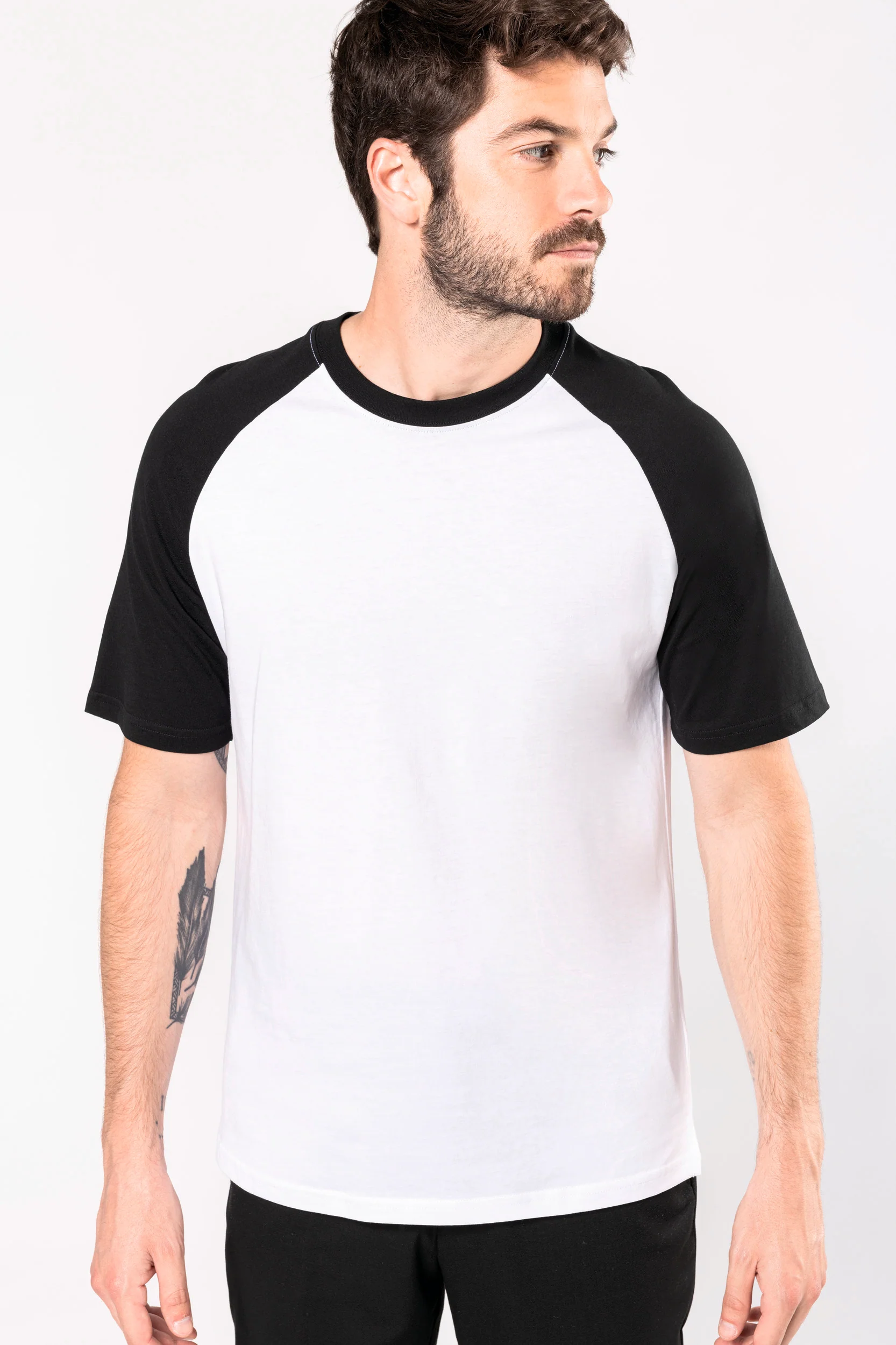 100% cotone pettinato. Maniche Raglan. Cuciture a doppio ago. Collo con Elastan. Spacchetti laterali. Certificato STANDARD 100 by OEKO-TEX®N° CQ1007/7, IFTH.
