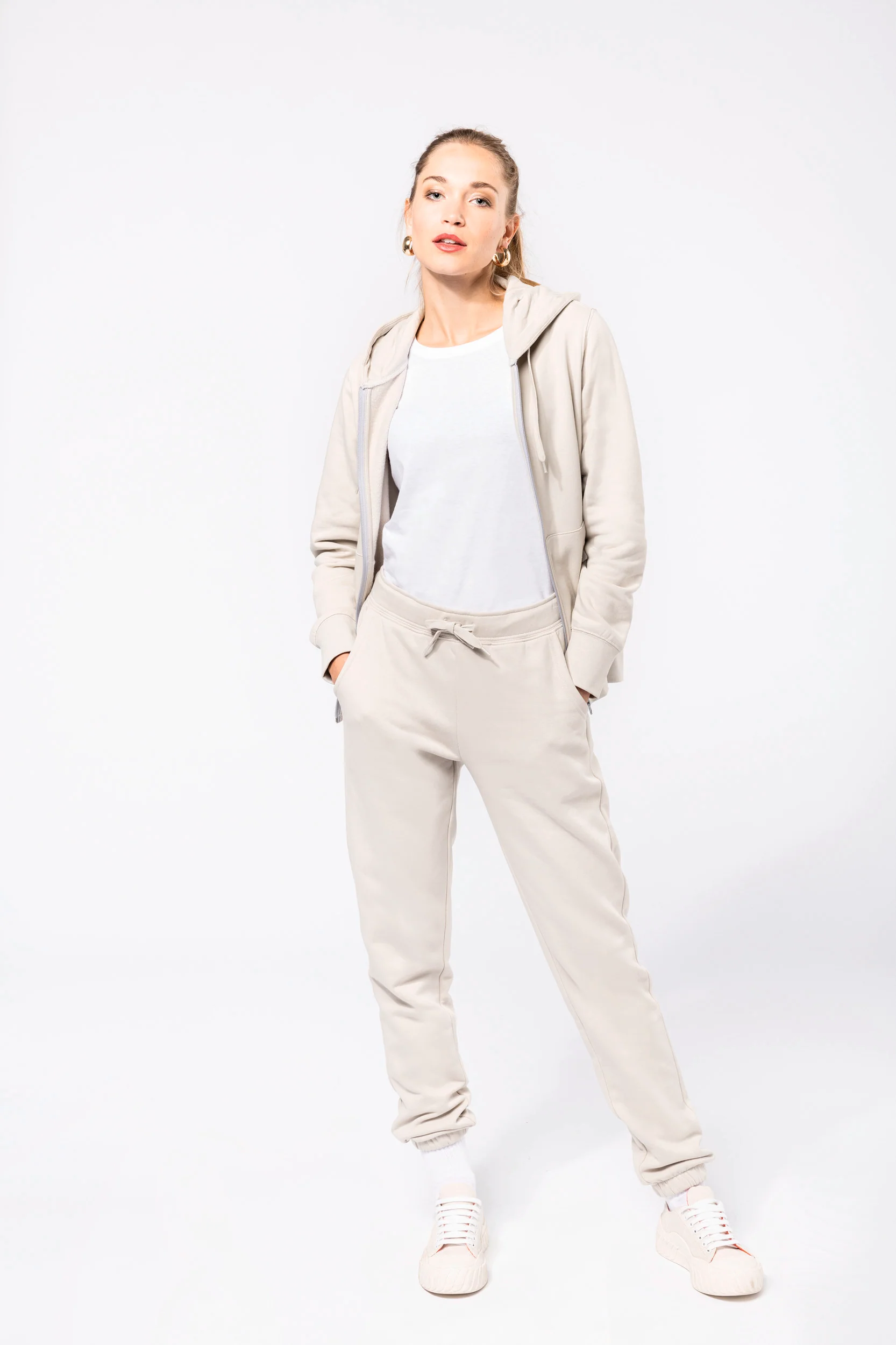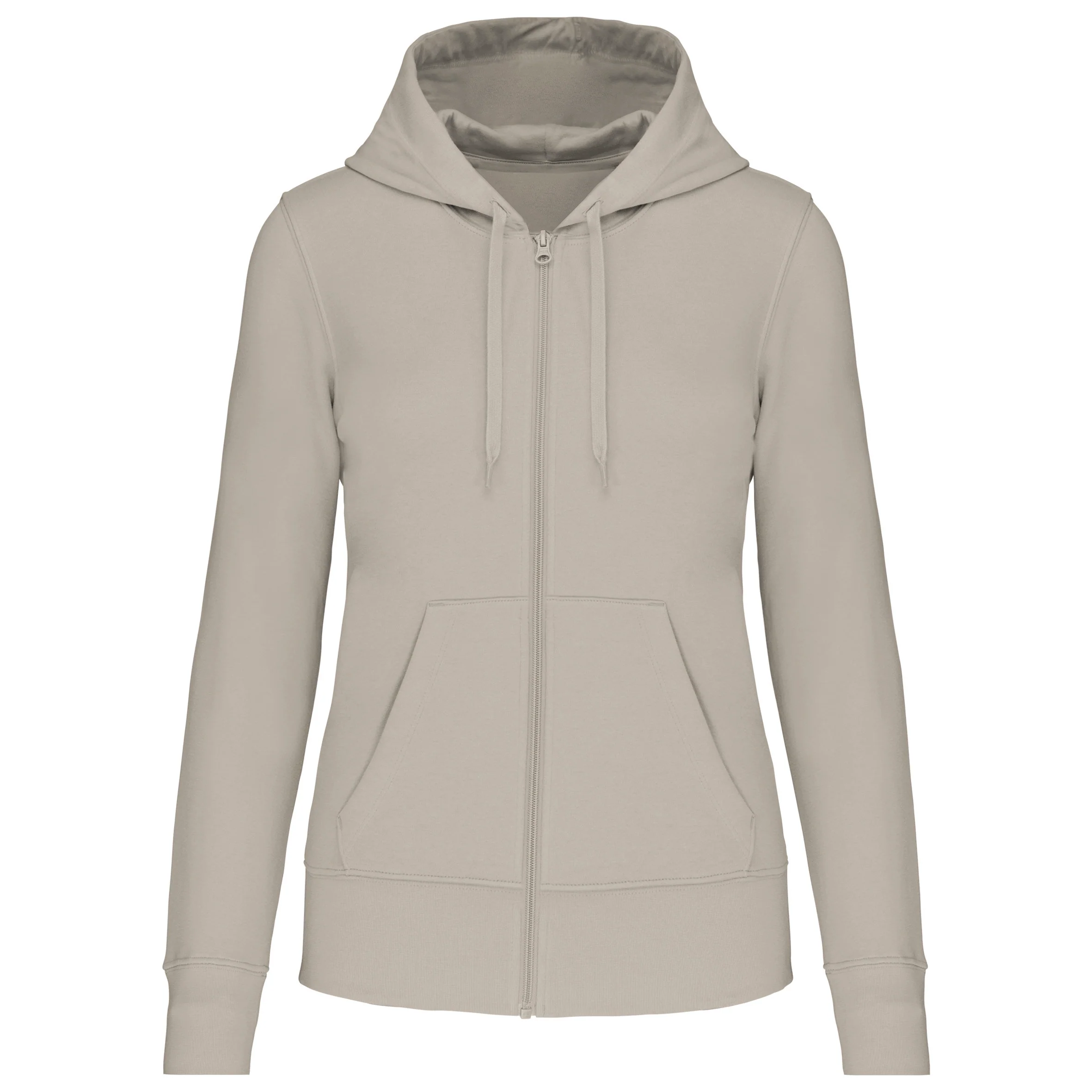 85% cotone biologico / 15% poliestere riciclato post-consumer. Tessuto felpato 3 fili LSF (Low Shrinkage Fleece). Cotone pettinato. Lavaggio agli enzimi. Taglio dritto. Tasche a canguro. Zip in nylon tono su tono. Cappuccio foderato 100% cotone, cotone jersey 180 g. Costina 1×1 struttura tubolare per una migliore finitura a fondo manica e fondo capo. Nastrino di rinforzo in jersey tono su tono e finitura a mezzaluna sull’interno collo. Finitura a doppio ago a fondo manica e fondo capo. Nessuna etichetta con il nome della marca sul collo; solo una piccola etichetta con l’indicazione della taglia per semplificare la personalizzazione. Certificato STANDARD 100 by OEKO-TEX® N° CQ 1007/7, IFTH.