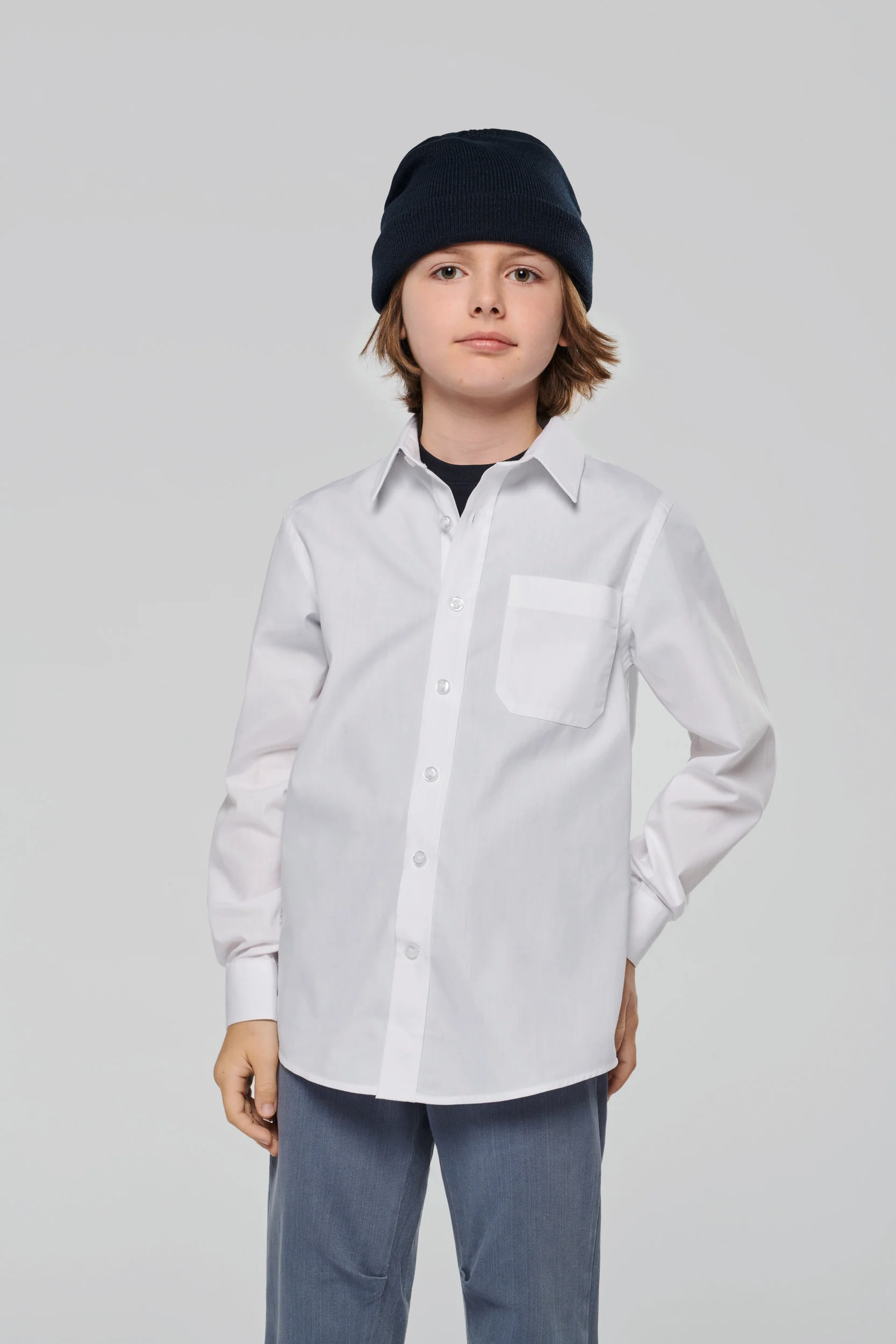 100% Cotone. Tessuto facile da stirare. Bottoni tono su tono. 1 tasca sul petto. Doppio carré posteriore. 1 bottone di ricambio. Fondo sagomato. Certificato STANDARD 100 by OEKO-TEX®N° CQ1007/7, IFTH.