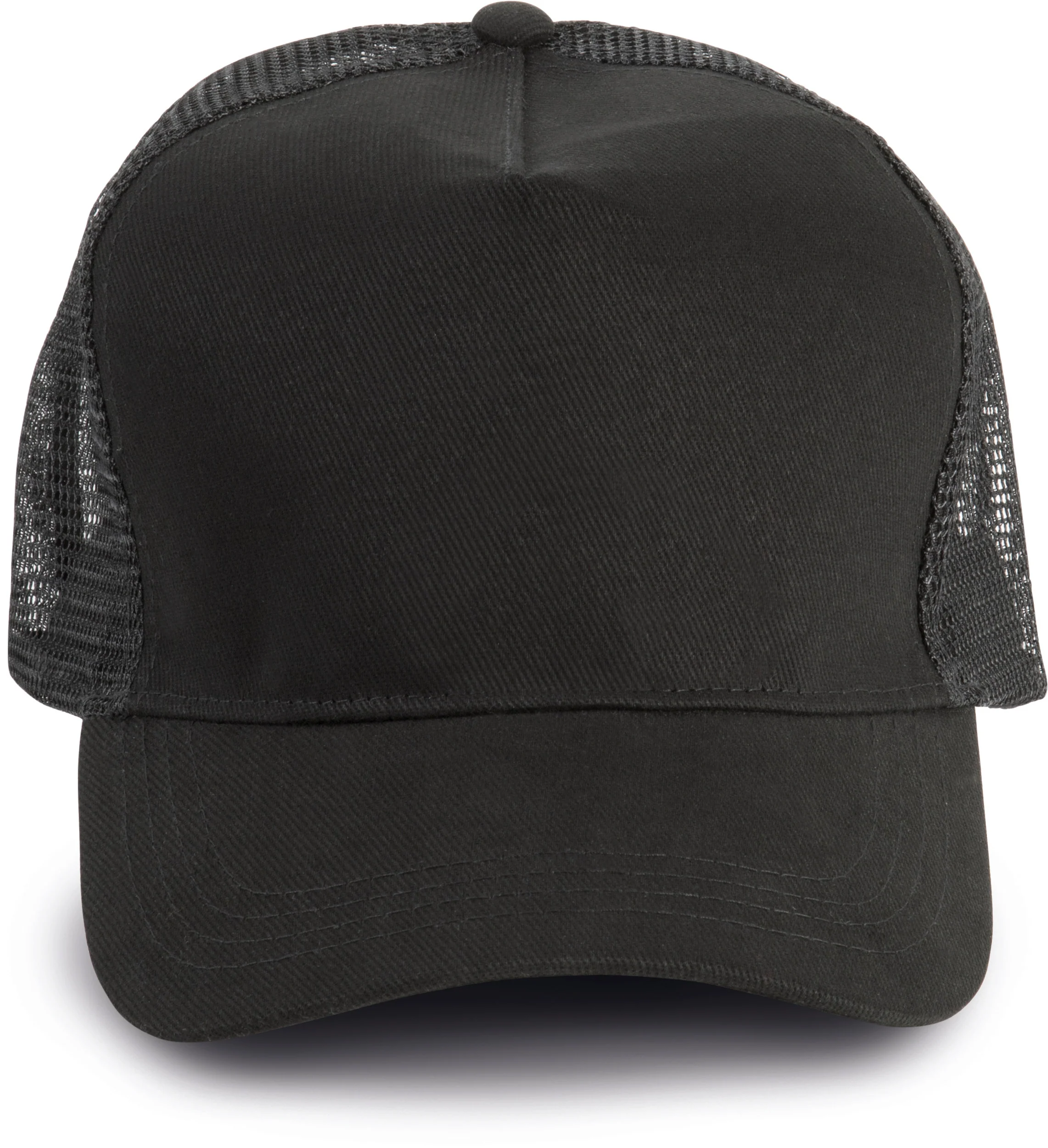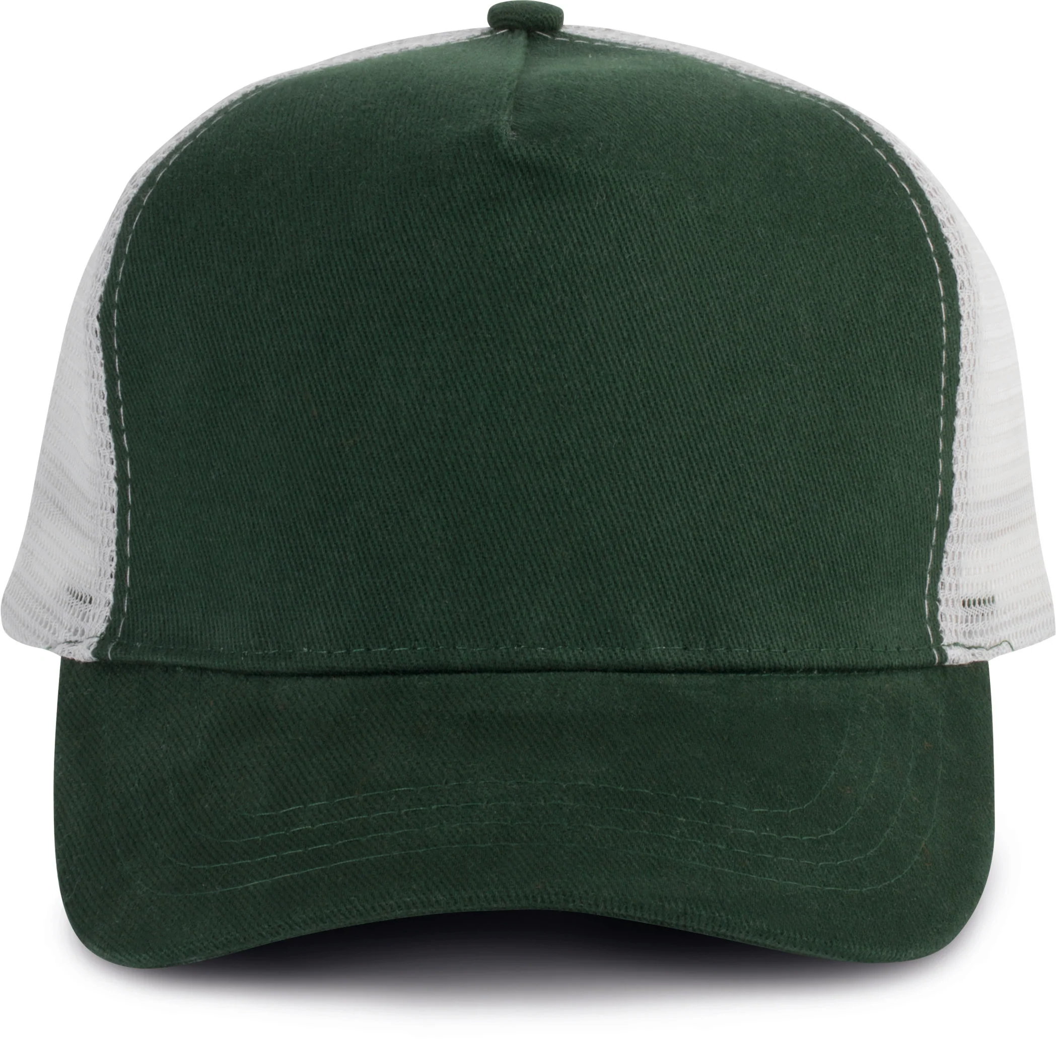 100% cotone spazzolato spesso su pannello frontale e visiera, rete 100% poliestere. 5 pannelli. Chiusura regolabile in plastica. * Colori camouflage: 85% cotone / 15% viscosa.