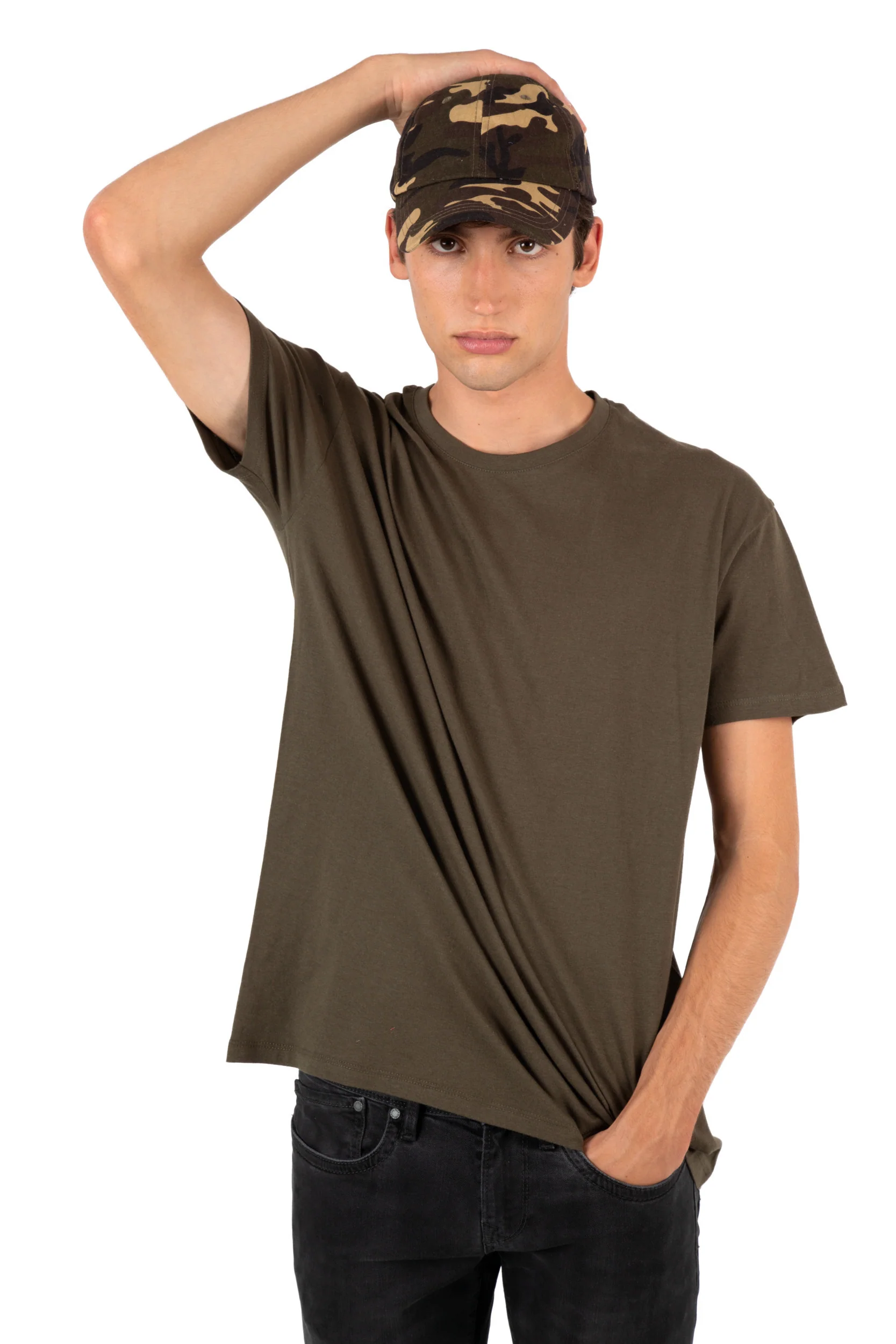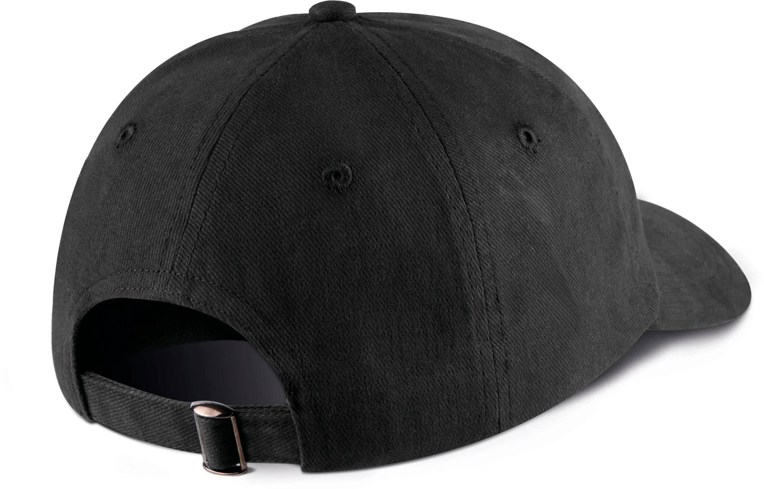 100% cotone spesso pettinato. 6 pannelli. Visiera a profilo basso. Chiusura sul retro con fibbia metallica. Certificato STANDARD 100 by OEKO-TEX® N° CQ 1007/8, IFTH.