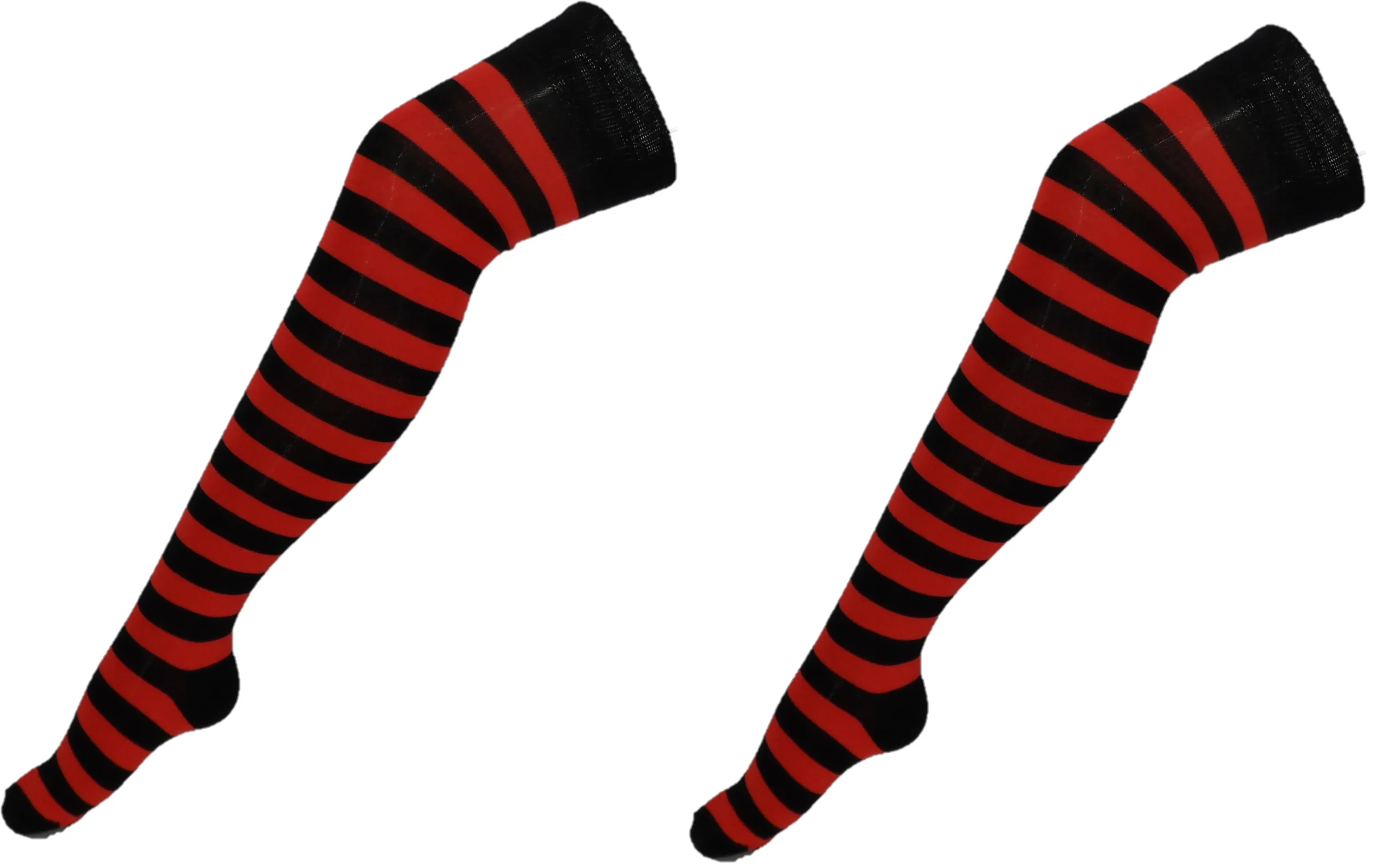 Ladies 2 Pair Pack of Black/Red Striped Over the Knee Socks