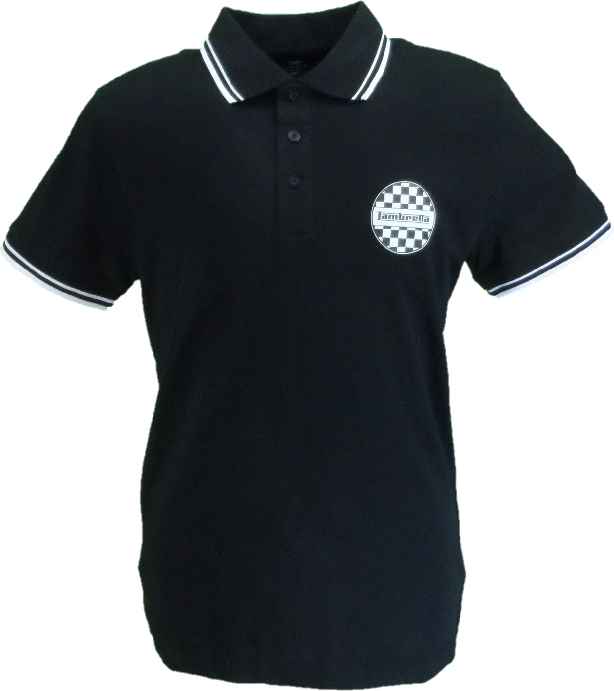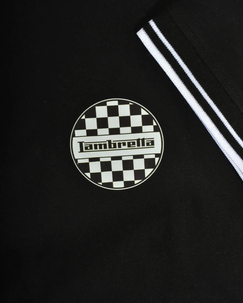 Elevate your casual wardrobe with this iconic Lambretta polo shirt, featuring a distinctive twin-tipped collar and classic three-button placket for timeless style. The tonal embroidered target on the sleeve adds authentic retro detail, while the two-tone logo print delivers bold brand presence. Finished with a woven Lambretta label at the side seam, this black and white design captures vintage mod aesthetic with contemporary comfort.