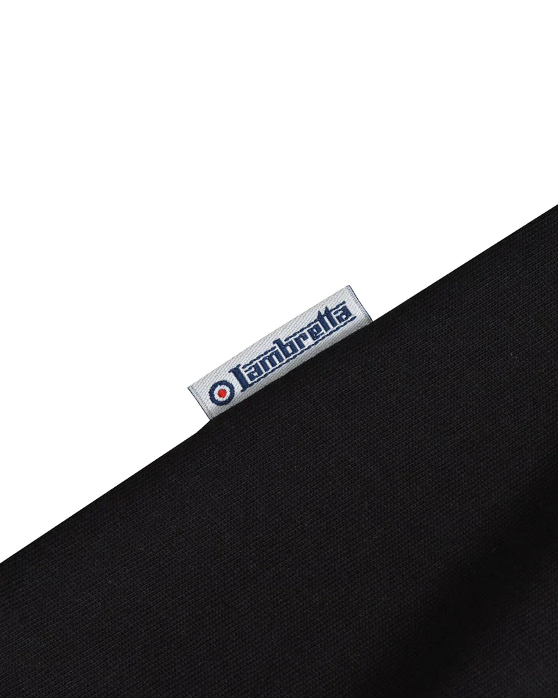 This Lambretta polo shirt features a stylish gingham collar and sleeve trim, complemented by a printed Lambretta logo on the chest for a sharp, modern look.