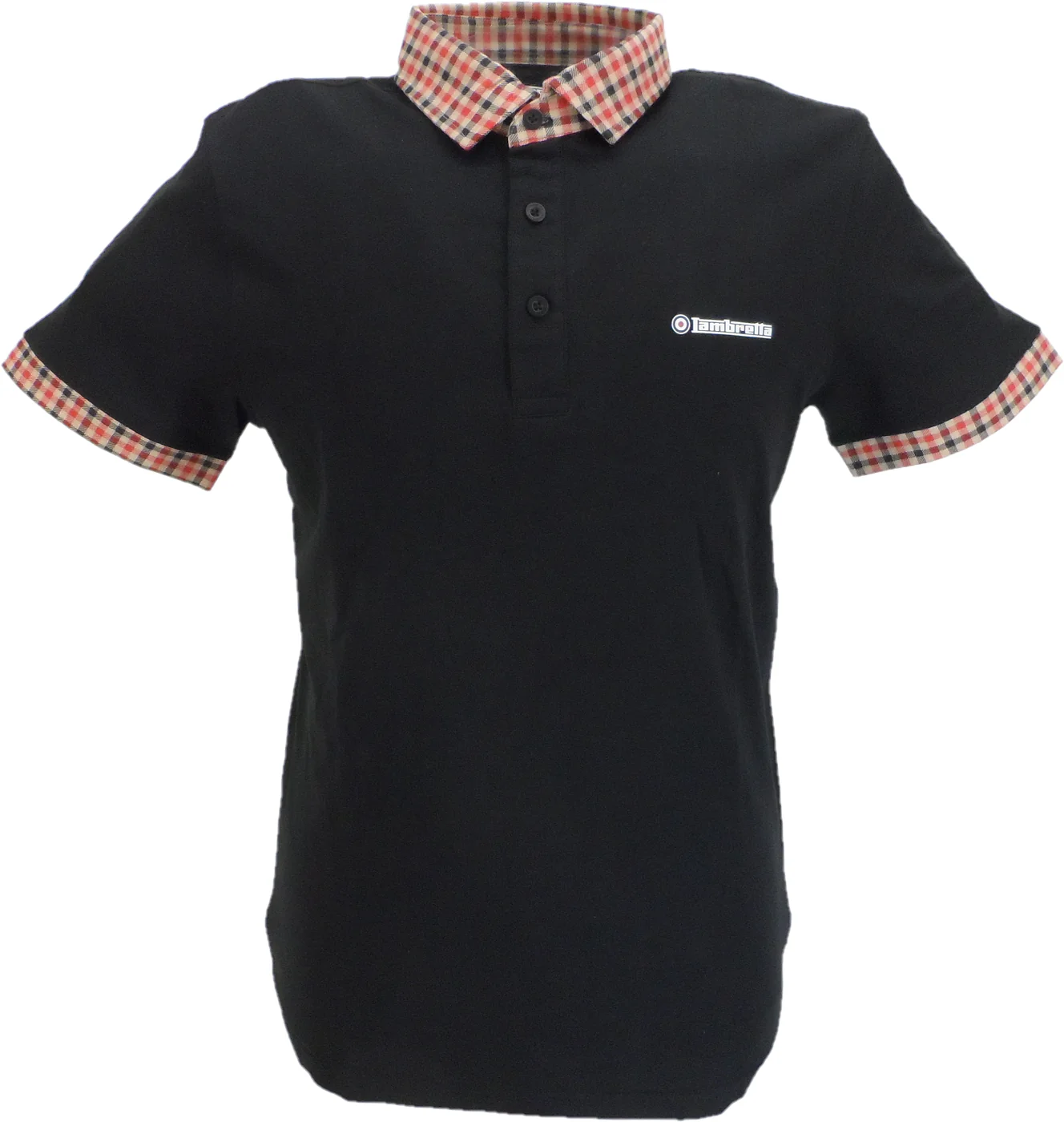 Lambretta Mens Black Gingham Collar Polo Shirts
