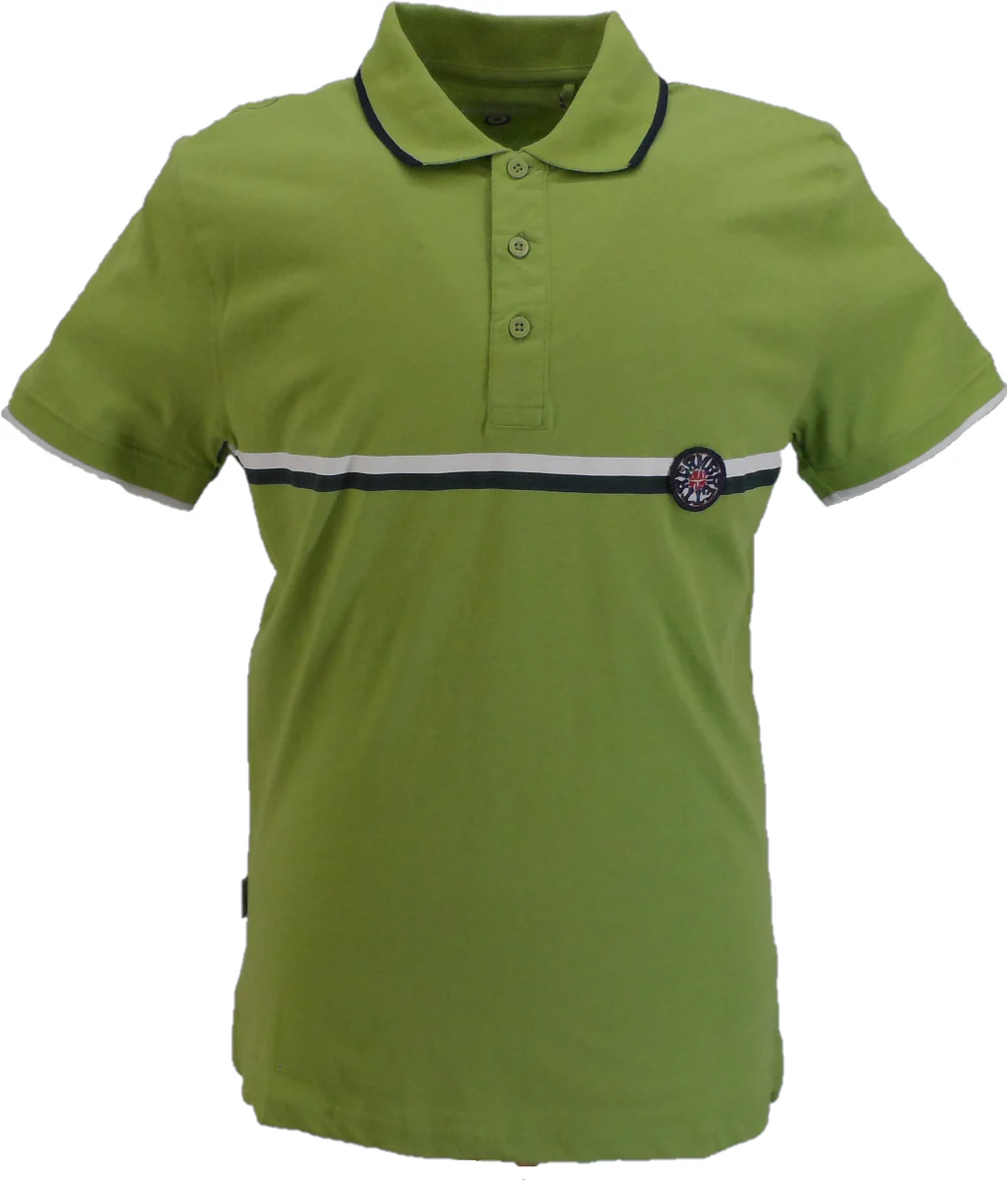 Lambretta Mens Fern Green Stripe Print Polo Shirts