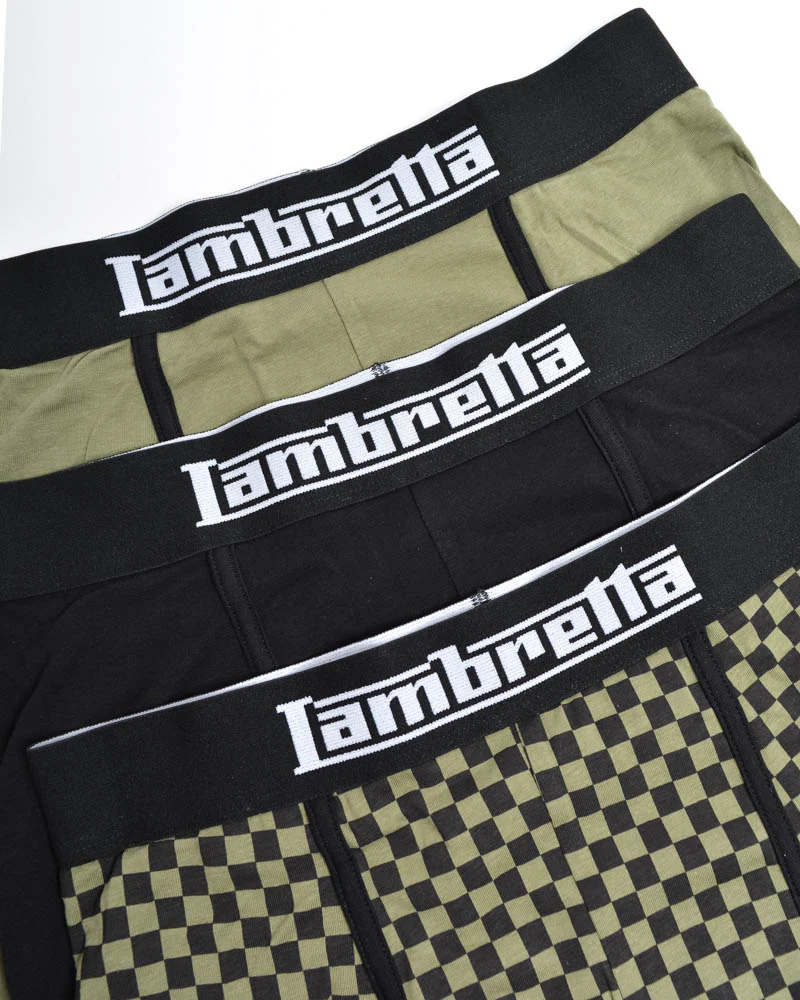 Lambretta Mens Khaki/Black 3 Pair Pack Boxer Shorts
