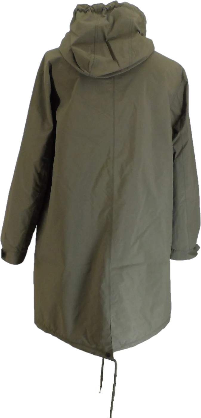 This khaki green parka combines rugged durability with timeless style. Crafted from ripstop fabric, it stands up to harsh weather while maintaining a sleek appearance. The hooded silhouette features an adjustable drawstring for a customised fit, whilst the fishtail hem extends coverage where you need it most. Four strategically placed front pockets keep essentials within reach, and the tonal sleeve badge delivers understated sophistication. A robust zip fastening makes layering effortless, whether you’re heading out for an urban adventure or braving unpredictable conditions. Engineered for those who refuse to compromise between protection and polish.