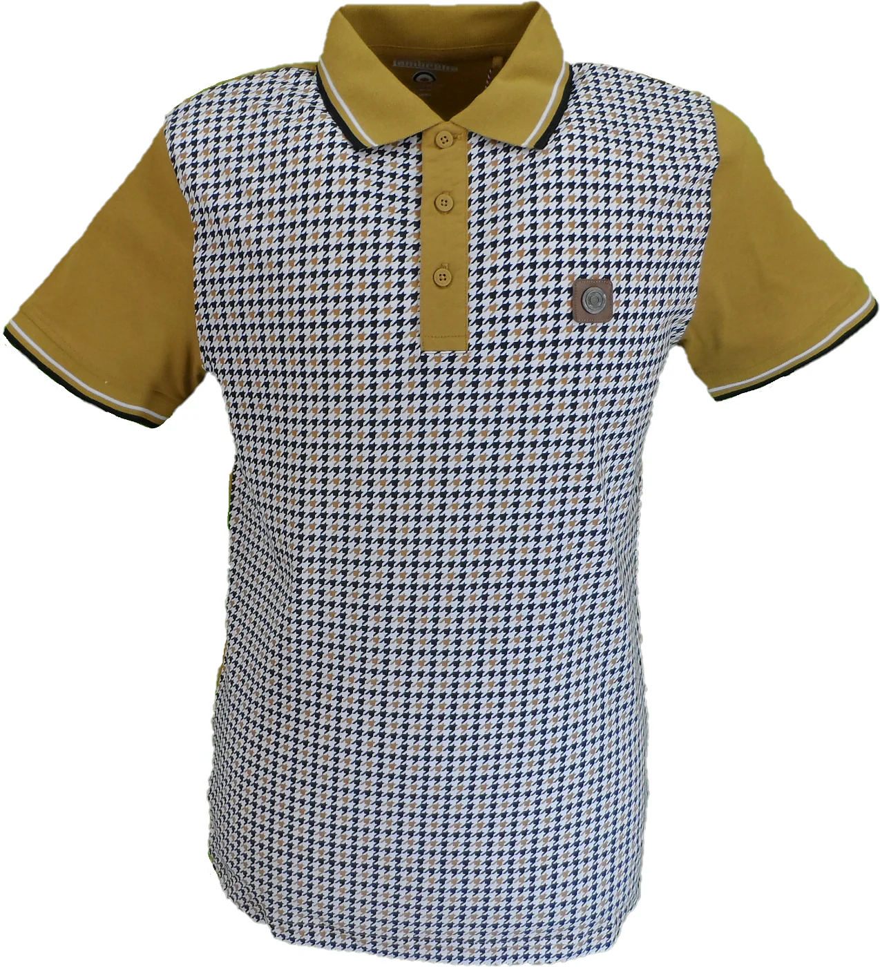 Lambretta Mens Mustard Houndstooth Print Cotton Polo Shirts