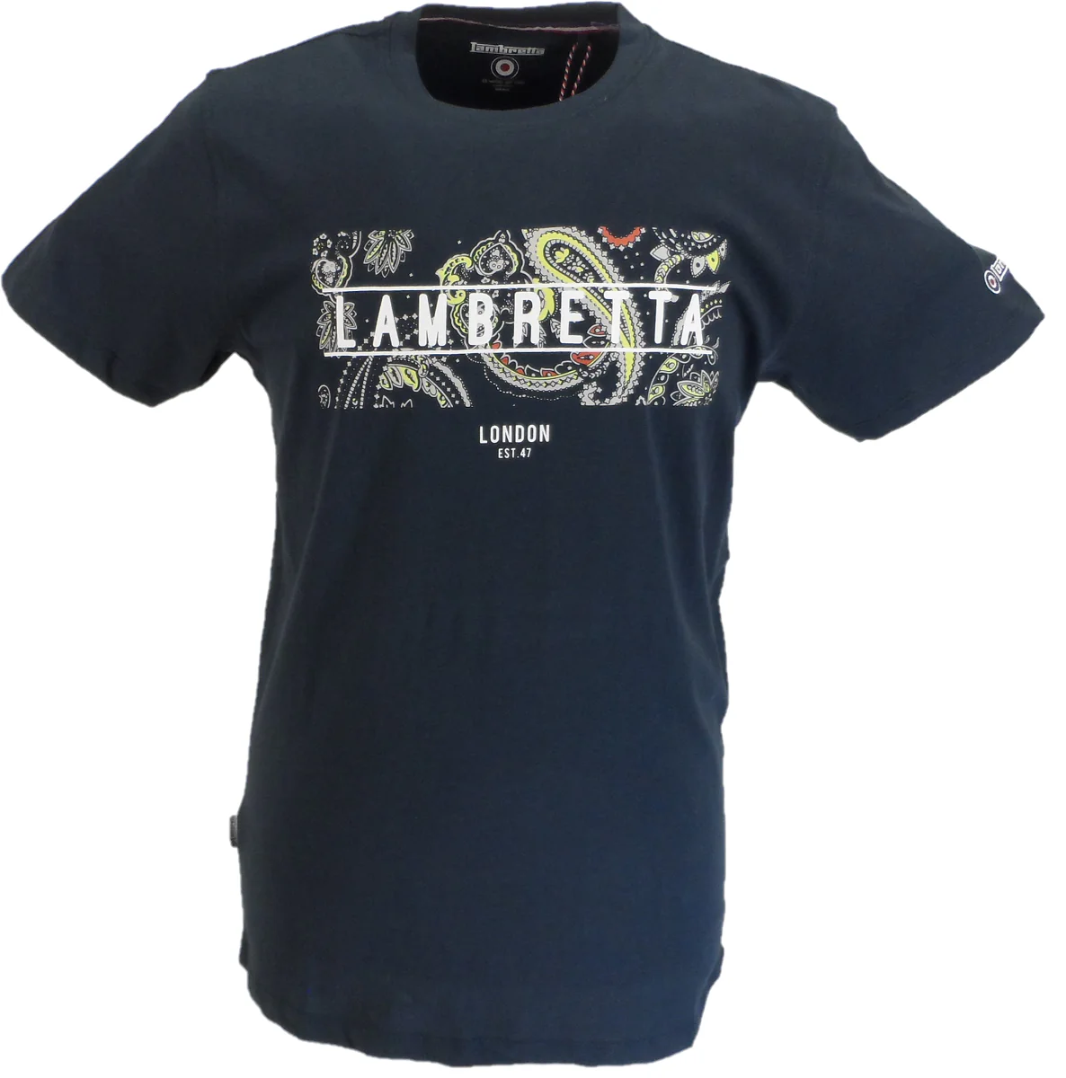 Classic Lambretta Mens Paisley Panel Logo 100% Cotton T-Shirt