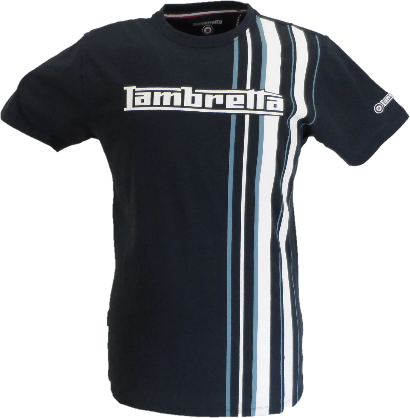 Lambretta Mens Navy Blue Striped Retro T Shirt