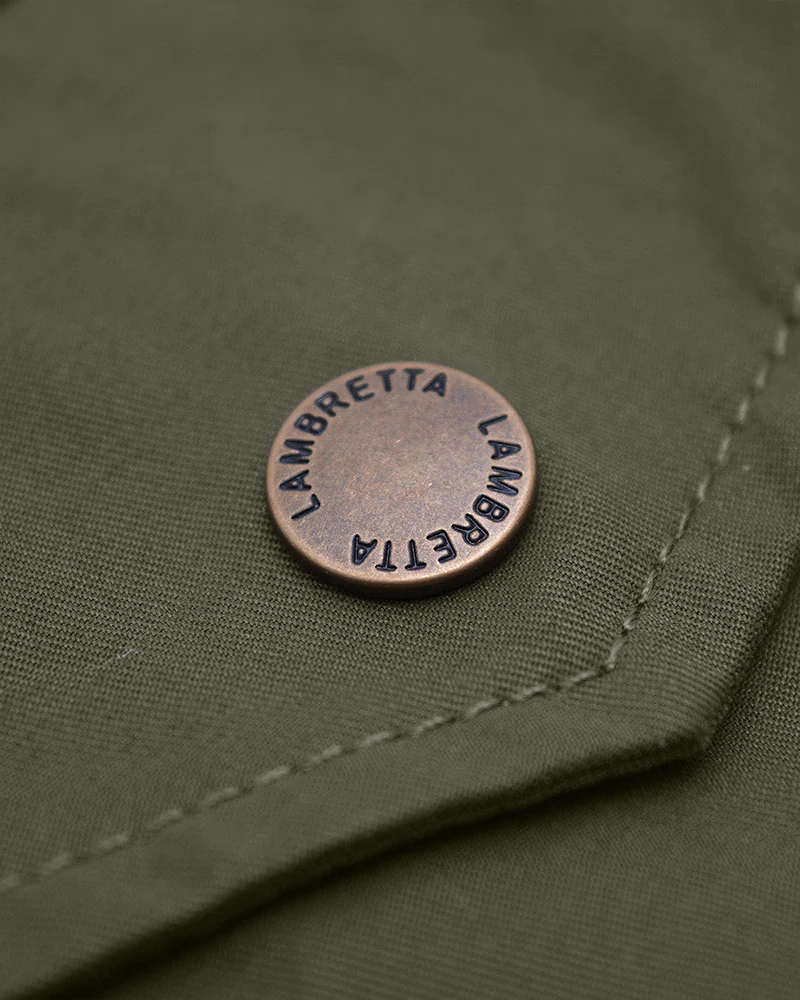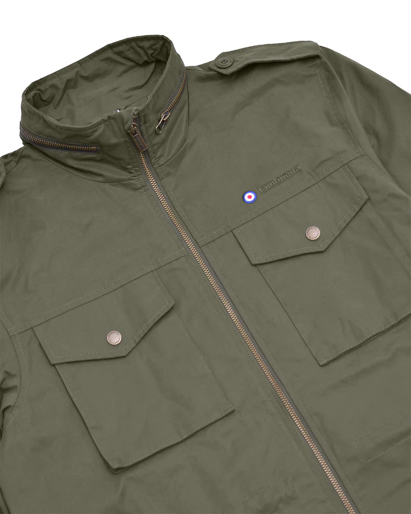 An iconic style jacket that has stayed true to its military heritage but with a Lambretta twist. Tonal chest embroidery, branded brass zip, and snap fasteners update this style to make it fashionable yet still keeping classic military styling.