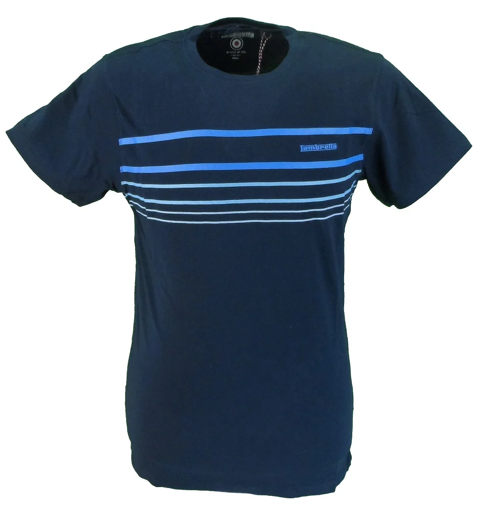 Classic Lambretta Navy Striped 100% Cotton Retro T-Shirt