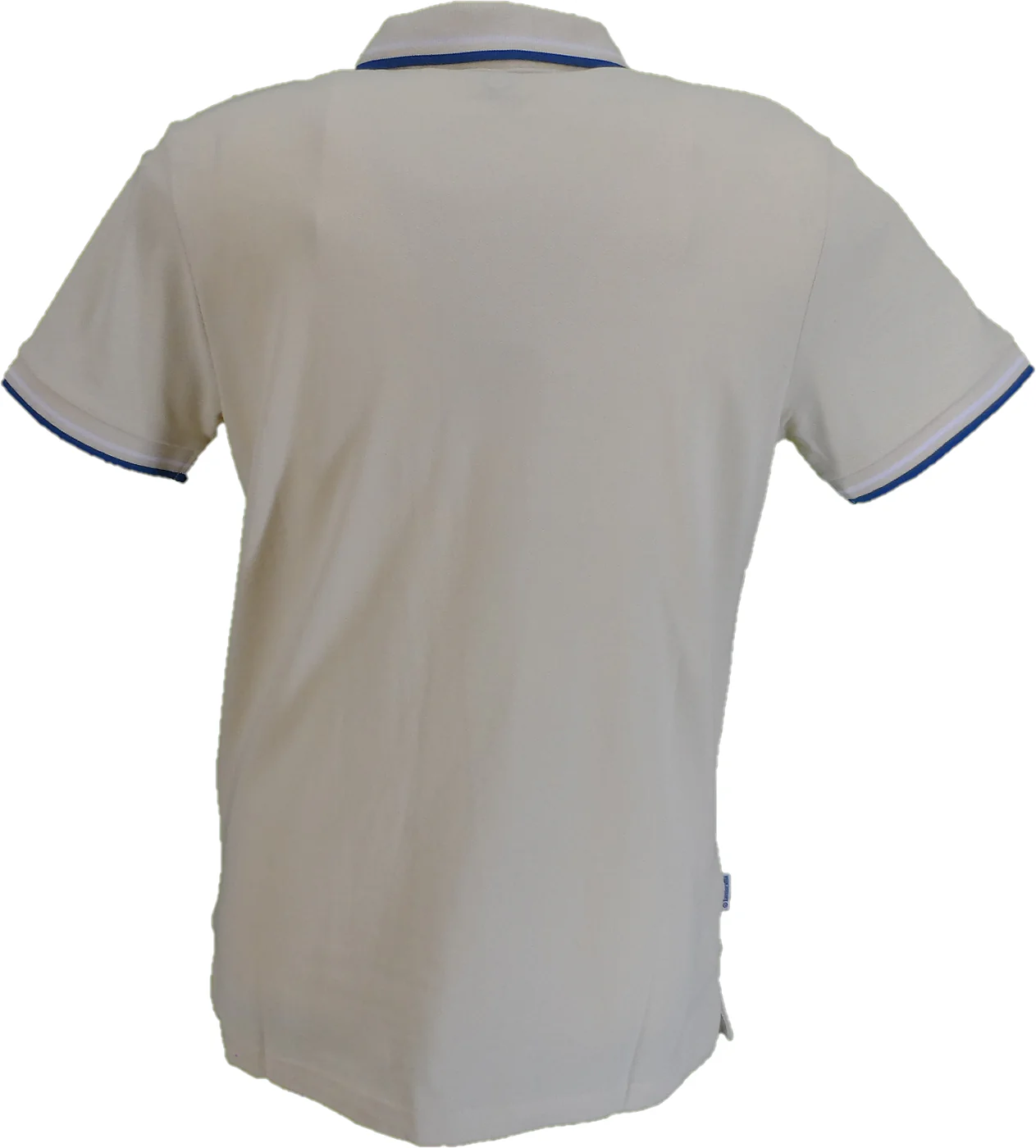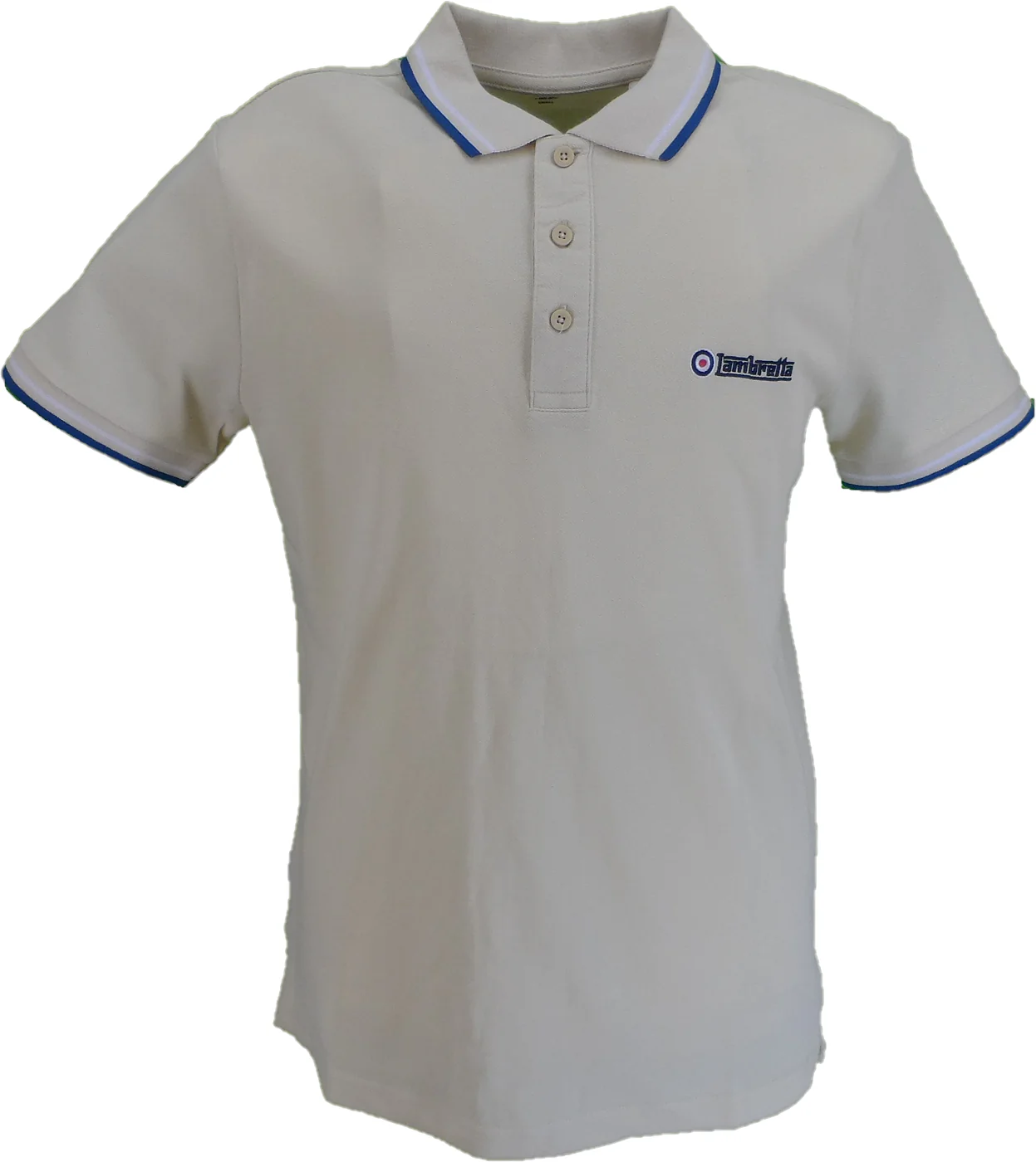 A smart casual tipped polo from Lambretta. A cotton-tipped design with an embroidered logo on the chest and target embroidery on the sleeve. Traditional 3-button placket.