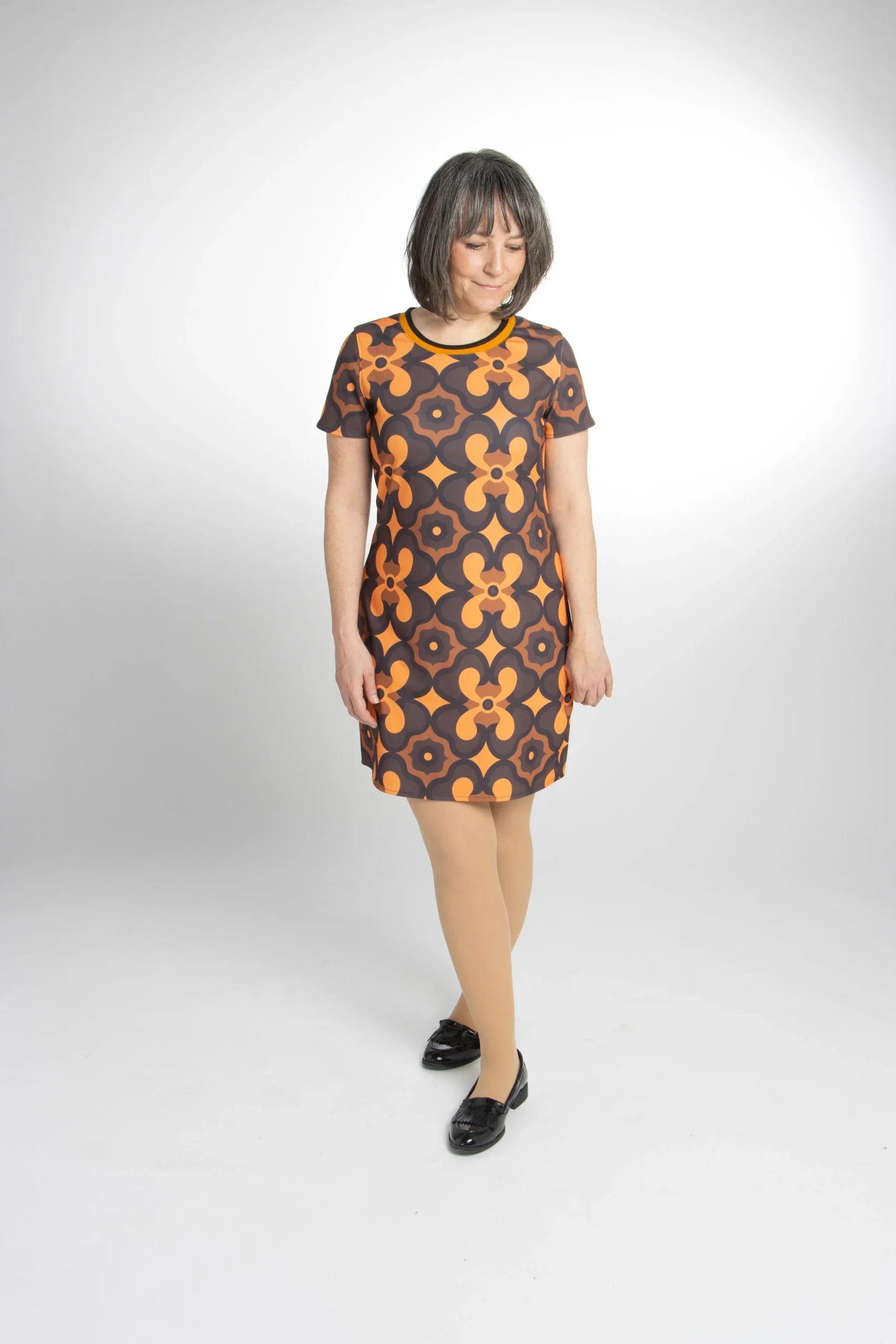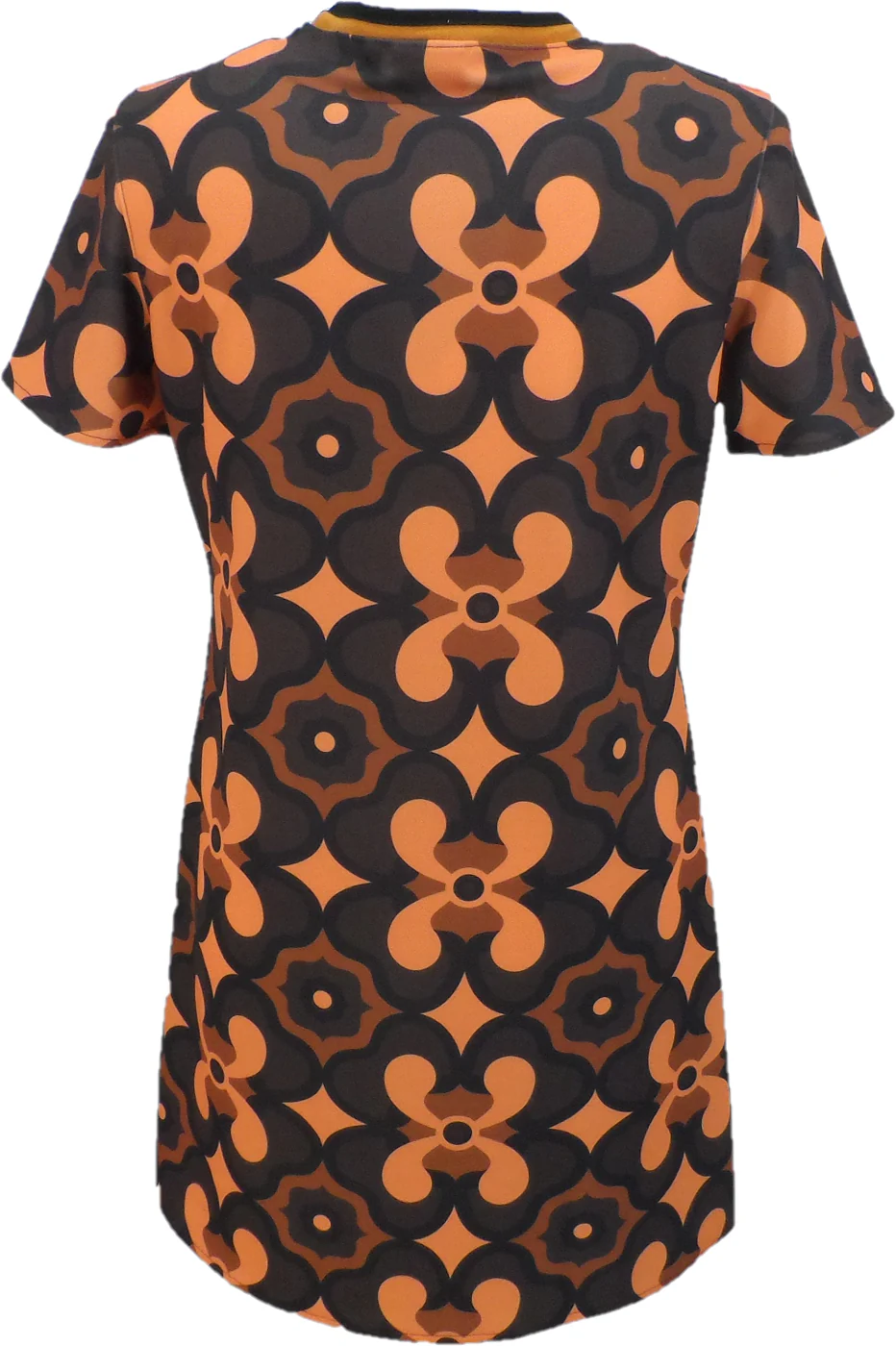 LHM Ladies 60s Retro Mod Vintage Orange/Brown Mini Dress