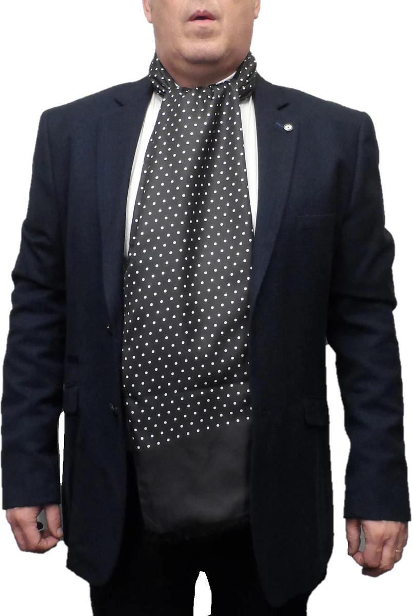 Mazeys Classic Retro Mod Mod Tassled Scarf Black Polka Dot