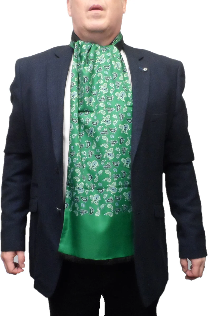 Mazeys Classic Retro Mod Mod Tassled Scarf Green Paisley