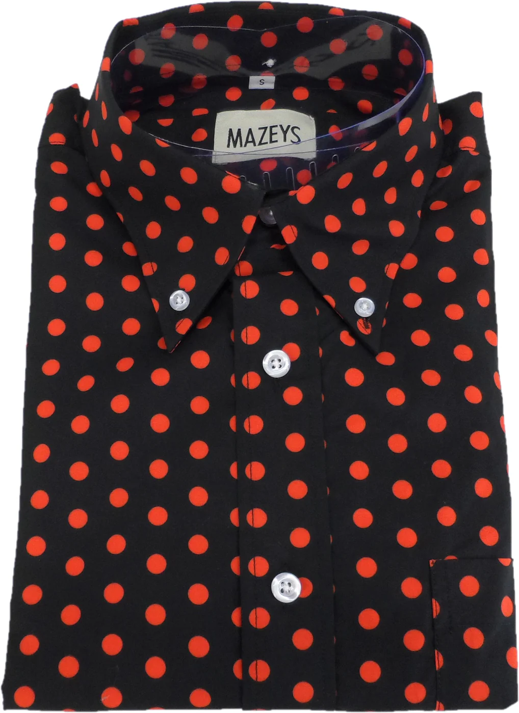 Mazeys Mens Black and Red Retro Mod Polka Dot 100% Cotton Shirts…
