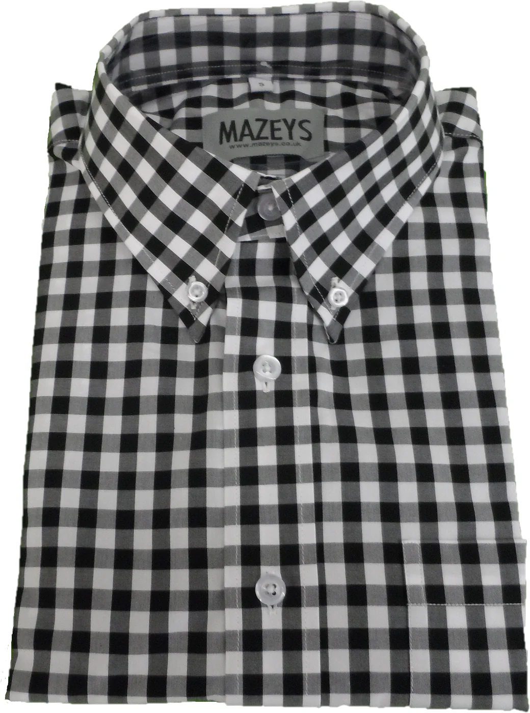 Mazeys Mens Black Gingham Check 100% Cotton Short Sleeved Shirts