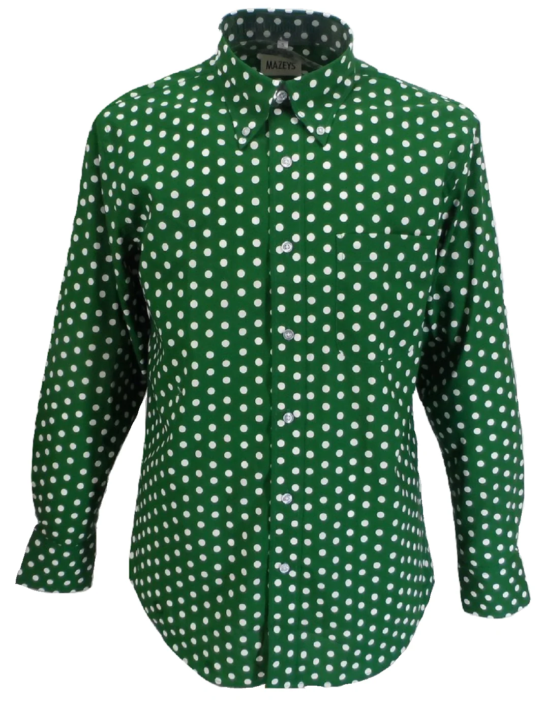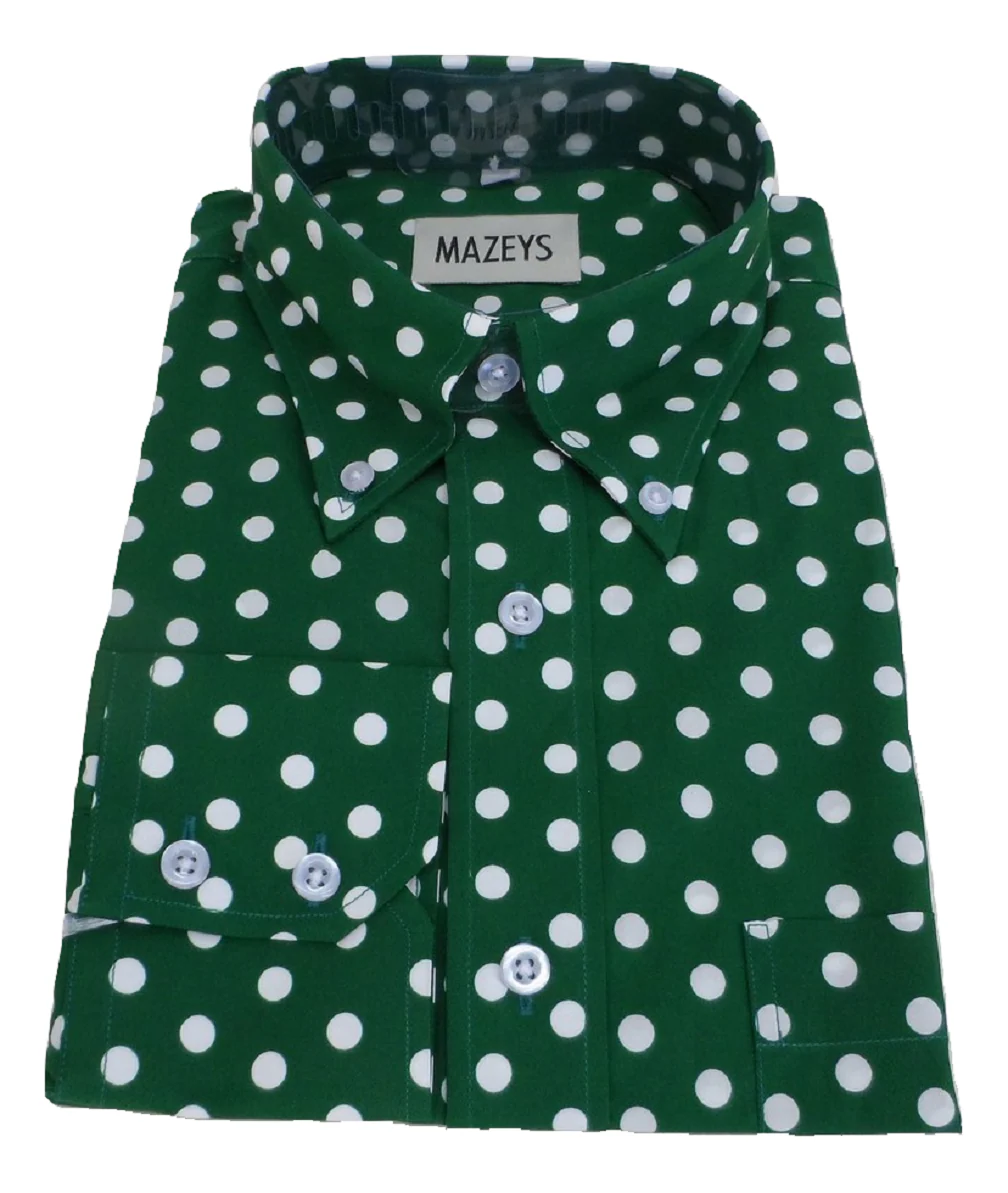 Mazeys Mens Green and White Retro Mod Polka Dot 100% Cotton Shirts…