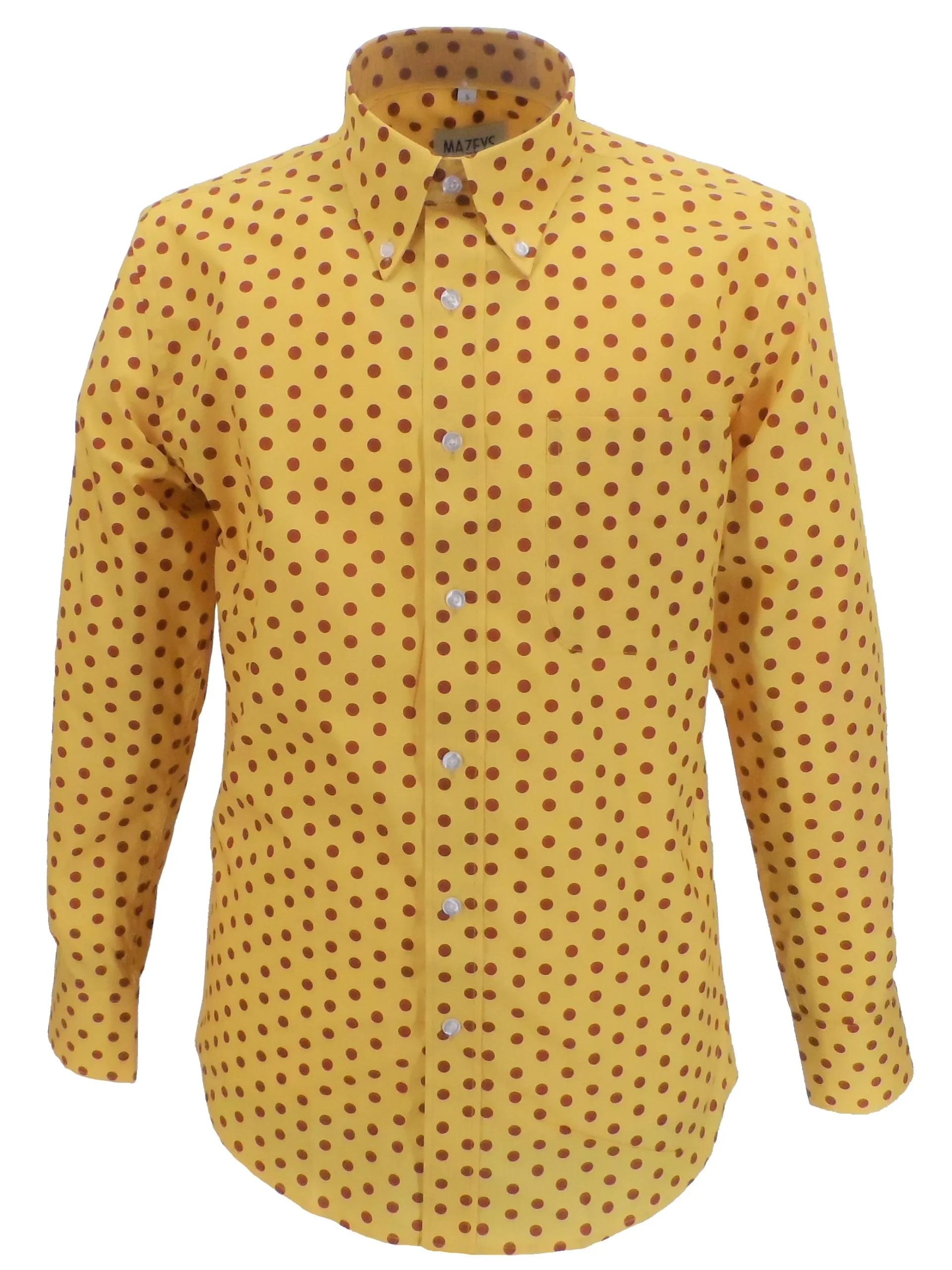 Mazeys Mens Mustard/Brown Retro Mod Polka Dot 100% Cotton Shirts…