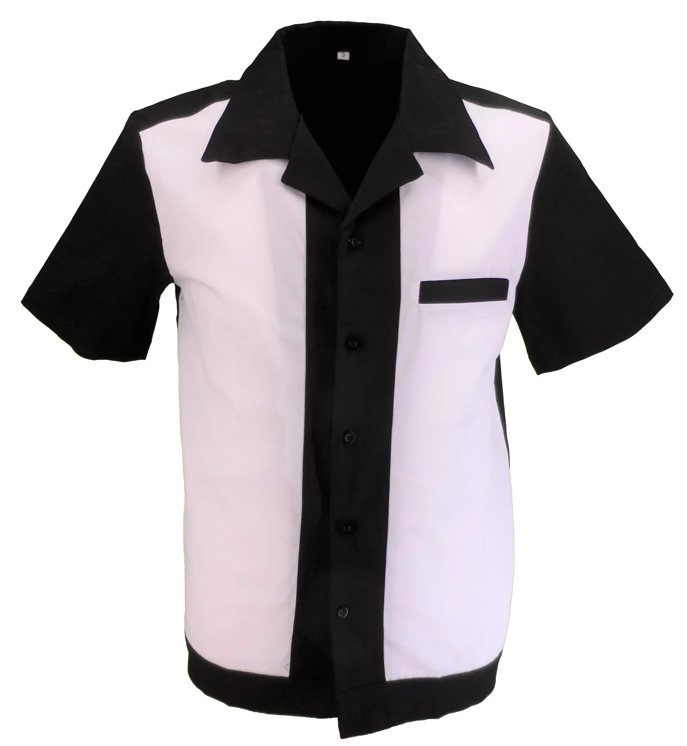Mazeys Mens Retro White/Black 50s Rockabilly Bowling Shirts