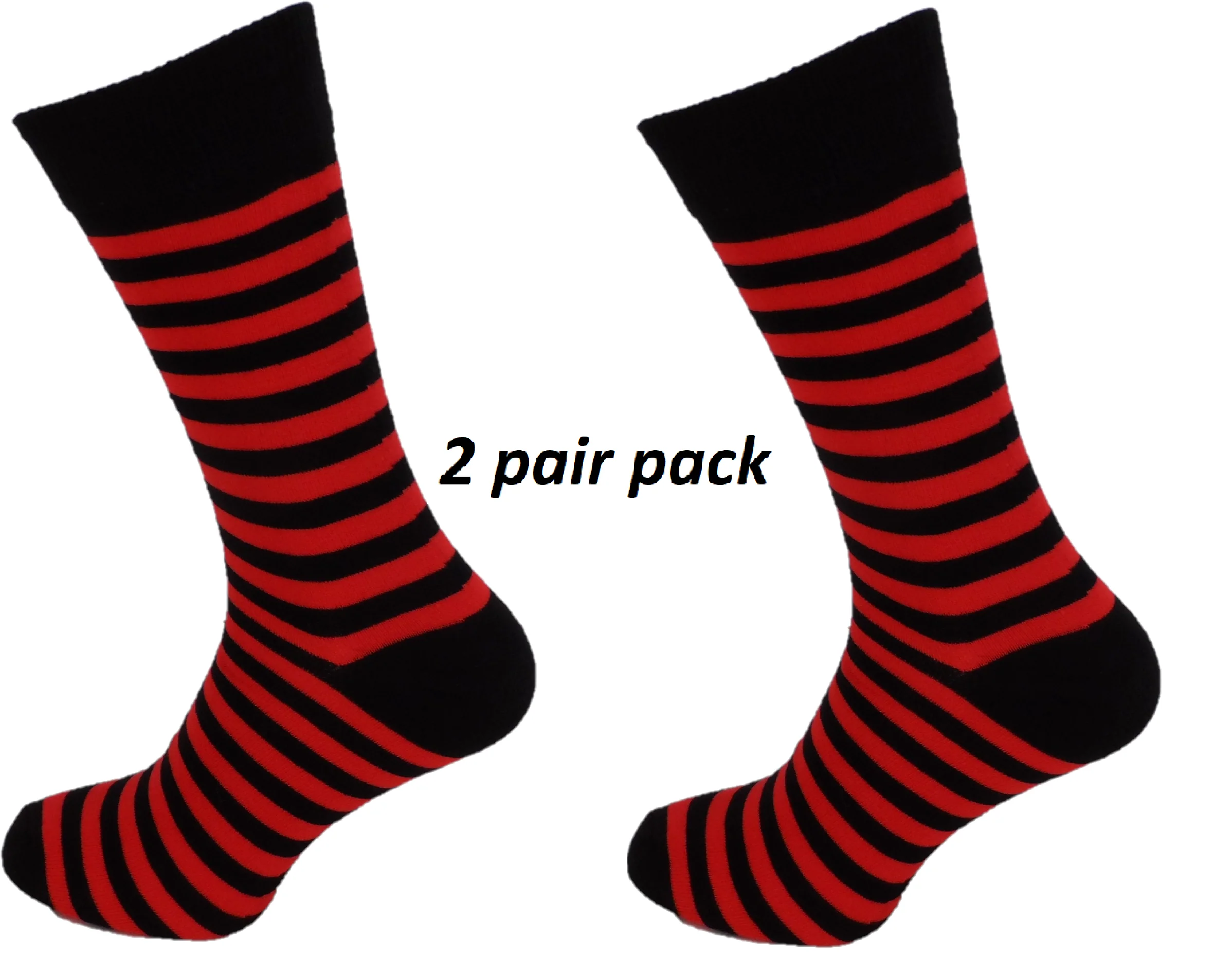 Mens 2 Pair Pack Black and Red Striped Retro Socks