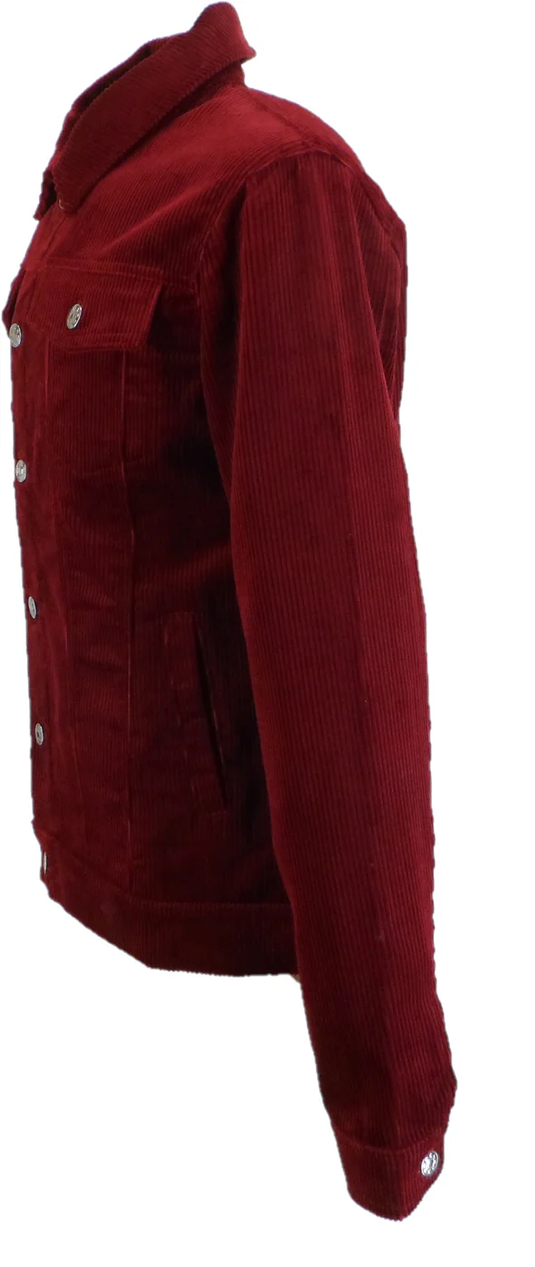 Mens 60s Retro Vintage Burgundy Cord Western Trucker Jacket