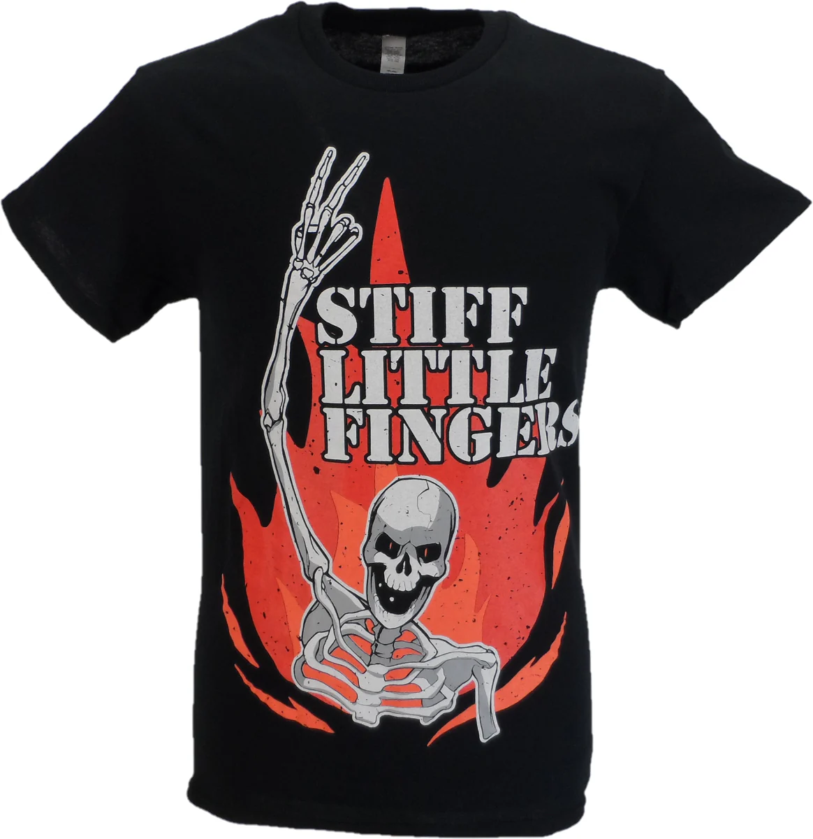 Mens Black Official Stiff Little Fingers Skeleton Flame T Shirt