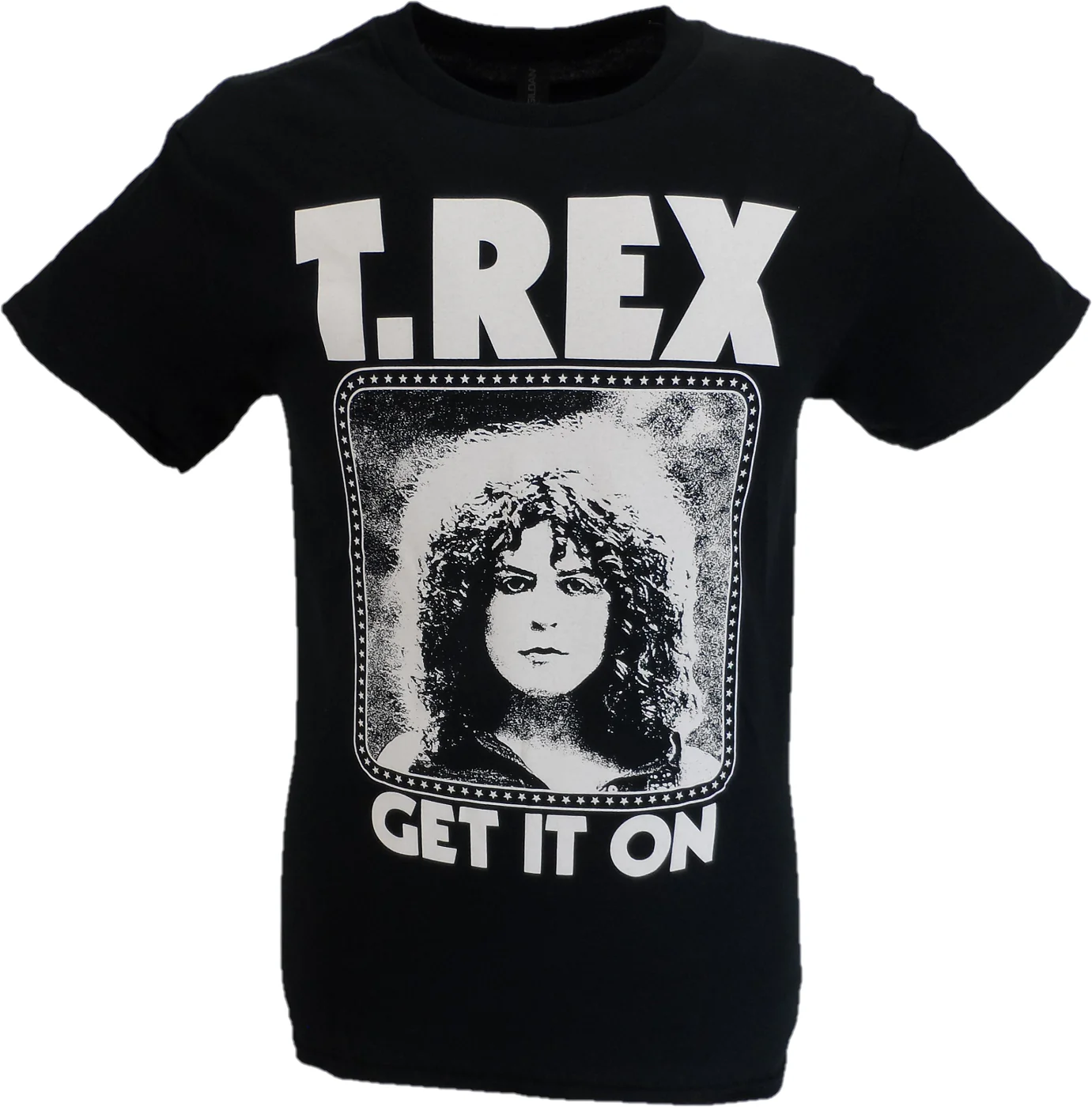 official licensed unisex soft-style cotton Tee featuring the Marc Bolan T-Rex Get it On Era motif.