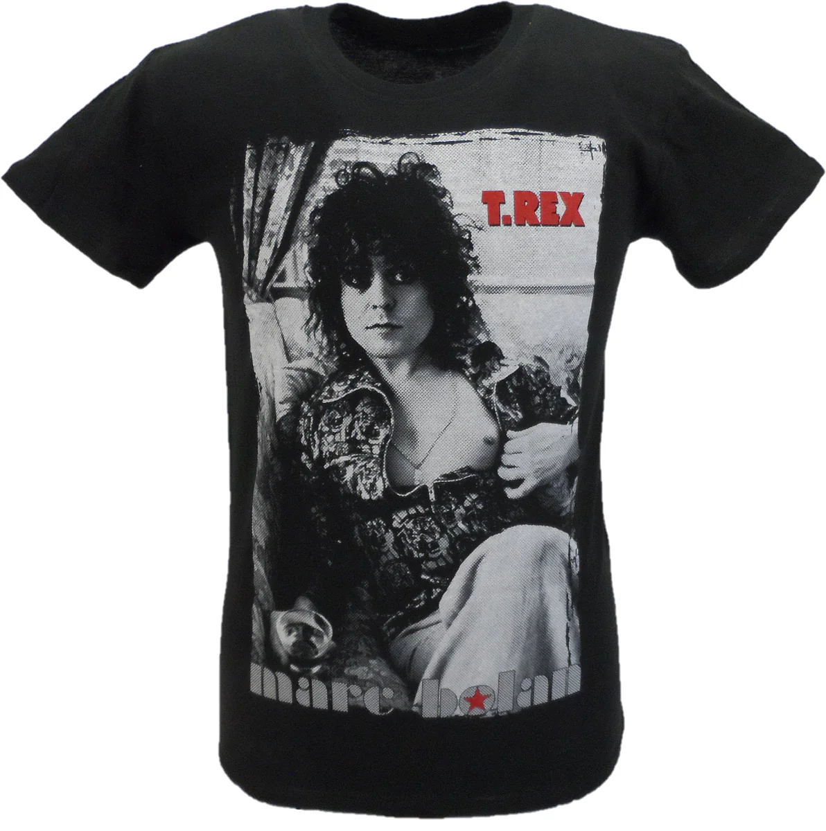 official licensed unisex soft-style cotton Tee featuring the Marc Bolan T-Rex Picture motif.