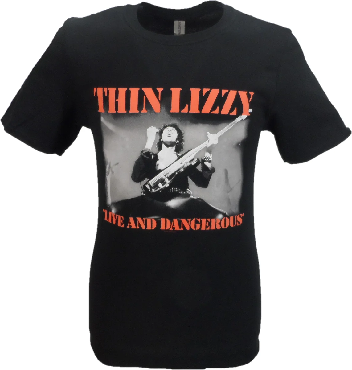 This Classic T-Shirt features the cover art of Thin Lizzys Live and Dangerous a live double album, released in June 1978. It was recorded in London in 1976, and Philadelphia and Toronto in 1977
