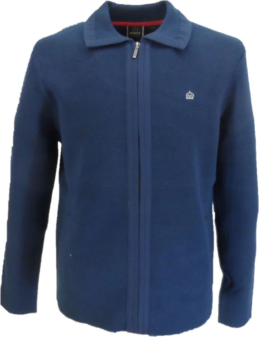 Merc London Mens Stylish Zip Fronted Cardigan with Contrasting Trim on the sleeveds and collar With Zip Fastening and topped off with Iconic Embroidered Merc Crown