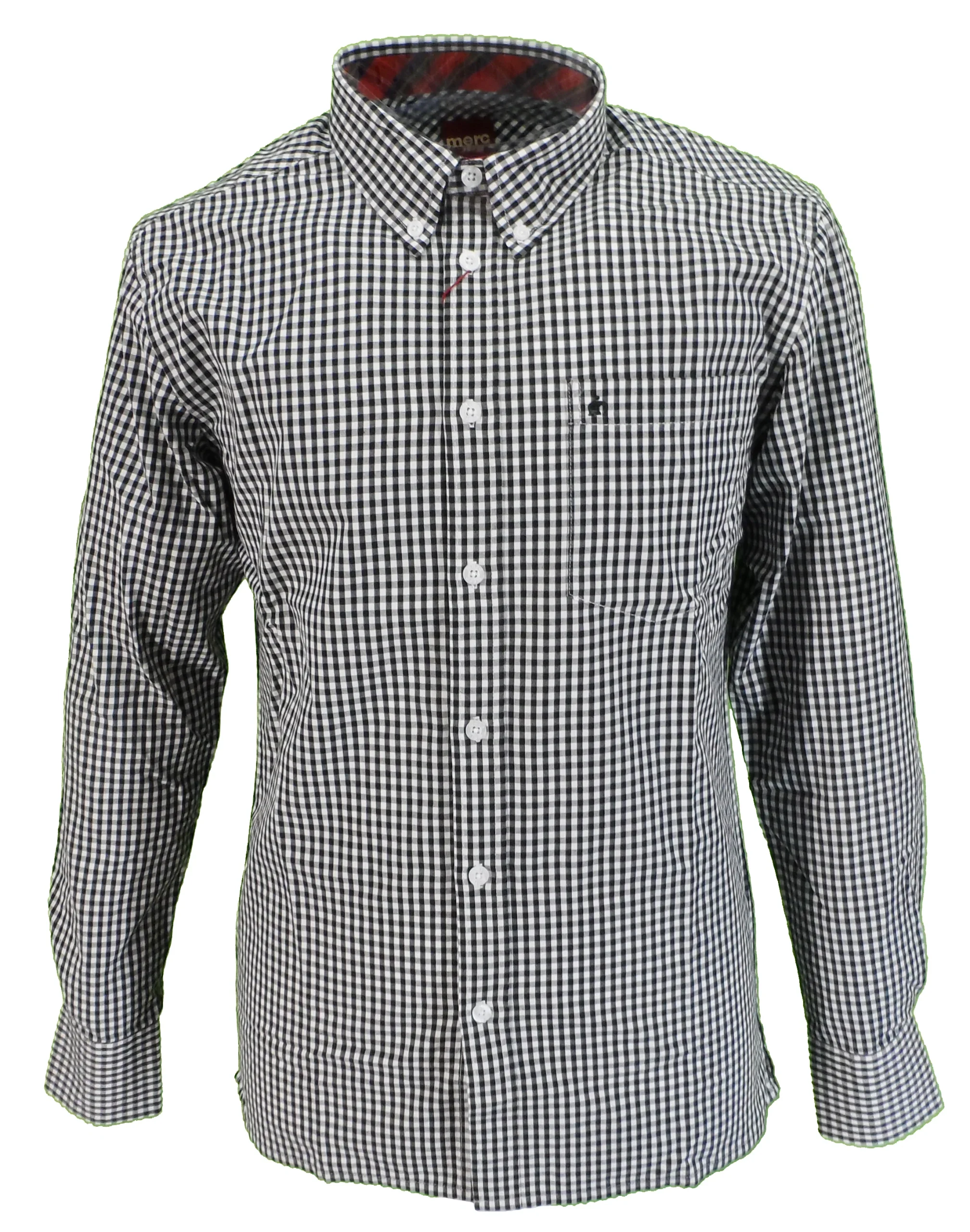 A classic vintage styled vintage button down shirt, mod-fit and with full back pleat, with front breast pocket.