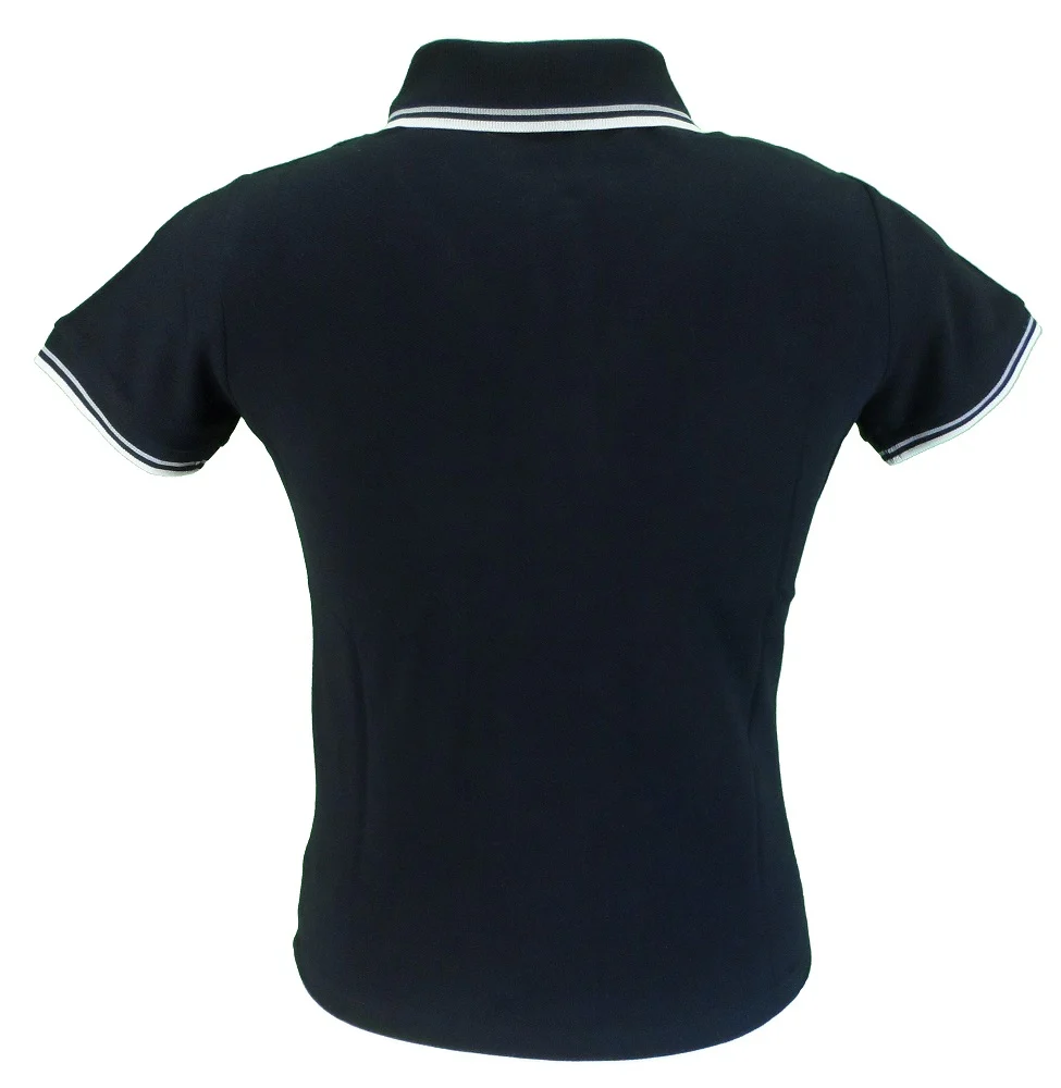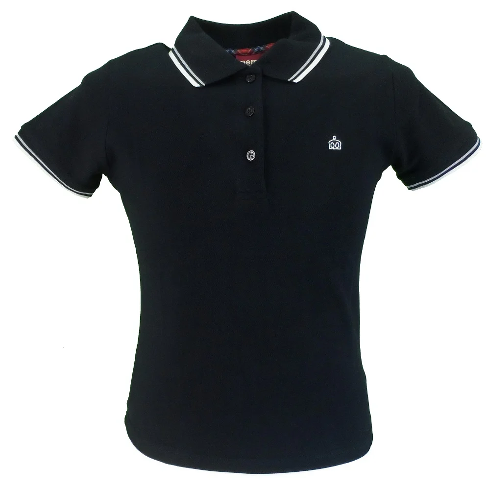 Ladies Mod clothing Polo shirt with Short-sleeved, with twin tipping on collar and Merc embroidered emblem on the chest. 100% cotton pique