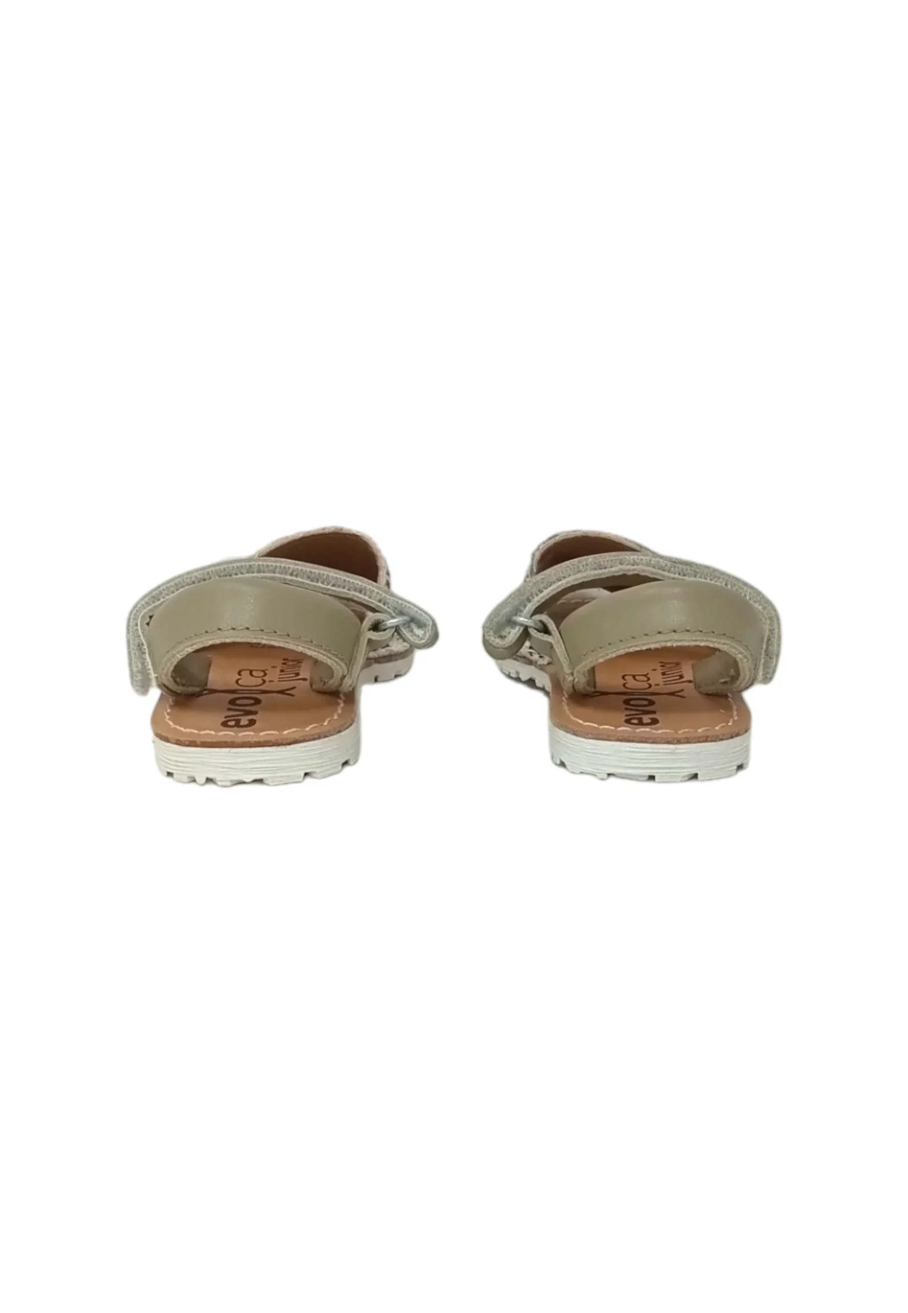 Le minorchine classiche hanno la suola piana di gomma, la parte superiore, che copre quasi l’intero piede lasciando solo una piccola fessura sulla punta, è in pelle cosi come la fodera interna. Per facilitare la calzata è previsto un cinturino regolabile con strappo alla caviglia, la calzata è regolare e sono vendute nuove con scatola originale.